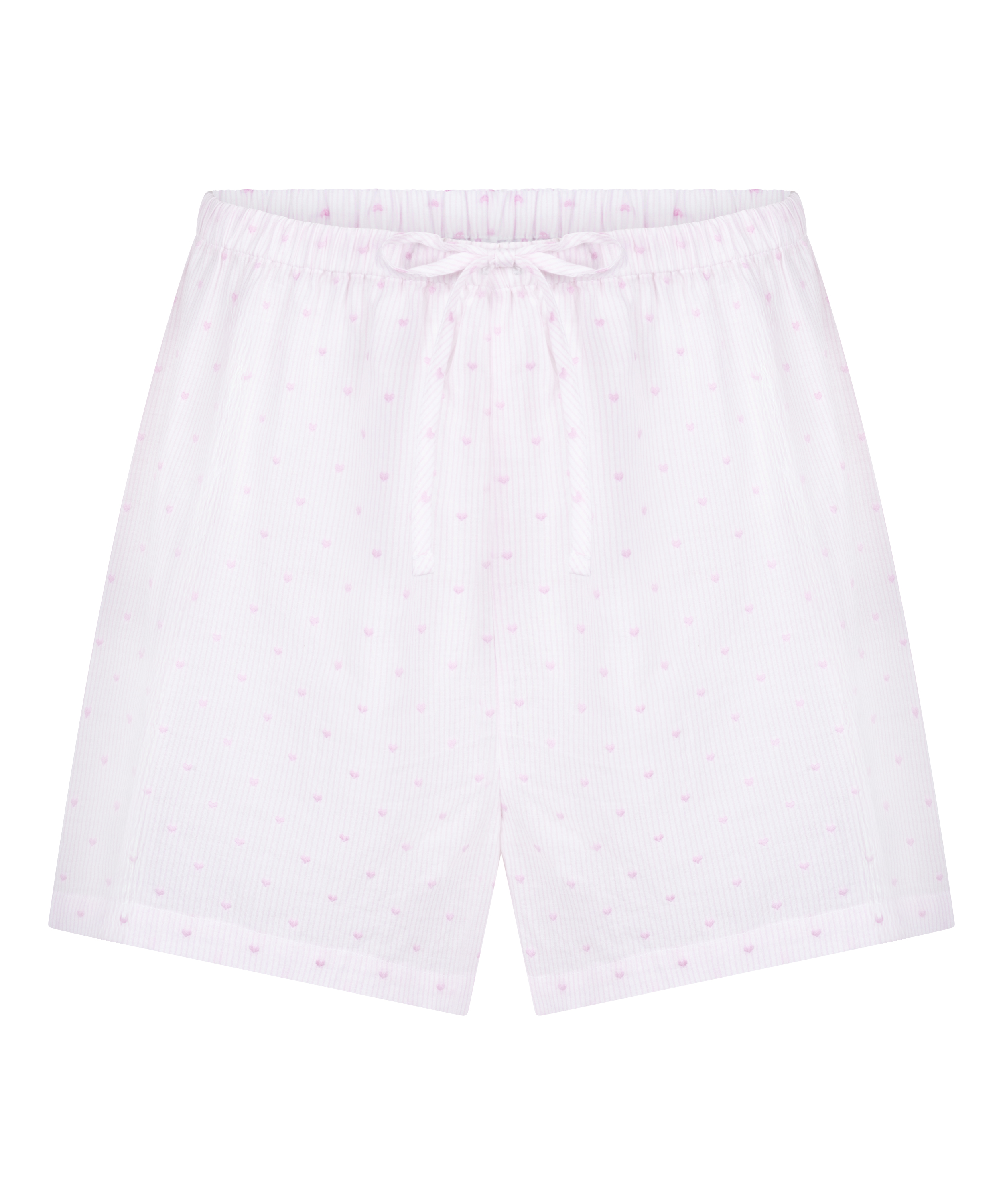 Zanurz się w krainie snów w tych nieodparcie miękkich w paski szortach piżamowych, stworzonych z premium tkanej bawełny dla absolutnego komfortu snu. Urocze hafty w serduszka i klasyczne paski sprawiają, że te szorty to idealne połączenie słodyczy i wygody. Delikatna elastyczna talia zapewnia przyjemne dopasowanie, które porusza się razem z Tobą. Lekkie, oddychające i nieodparcie kobiece – te szorty piżamowe to must-have na przytulne wieczory i leniwe poranki. Twoja nowa ulubiona bielizna nocna dla maksymalnego komfortu w domu.
