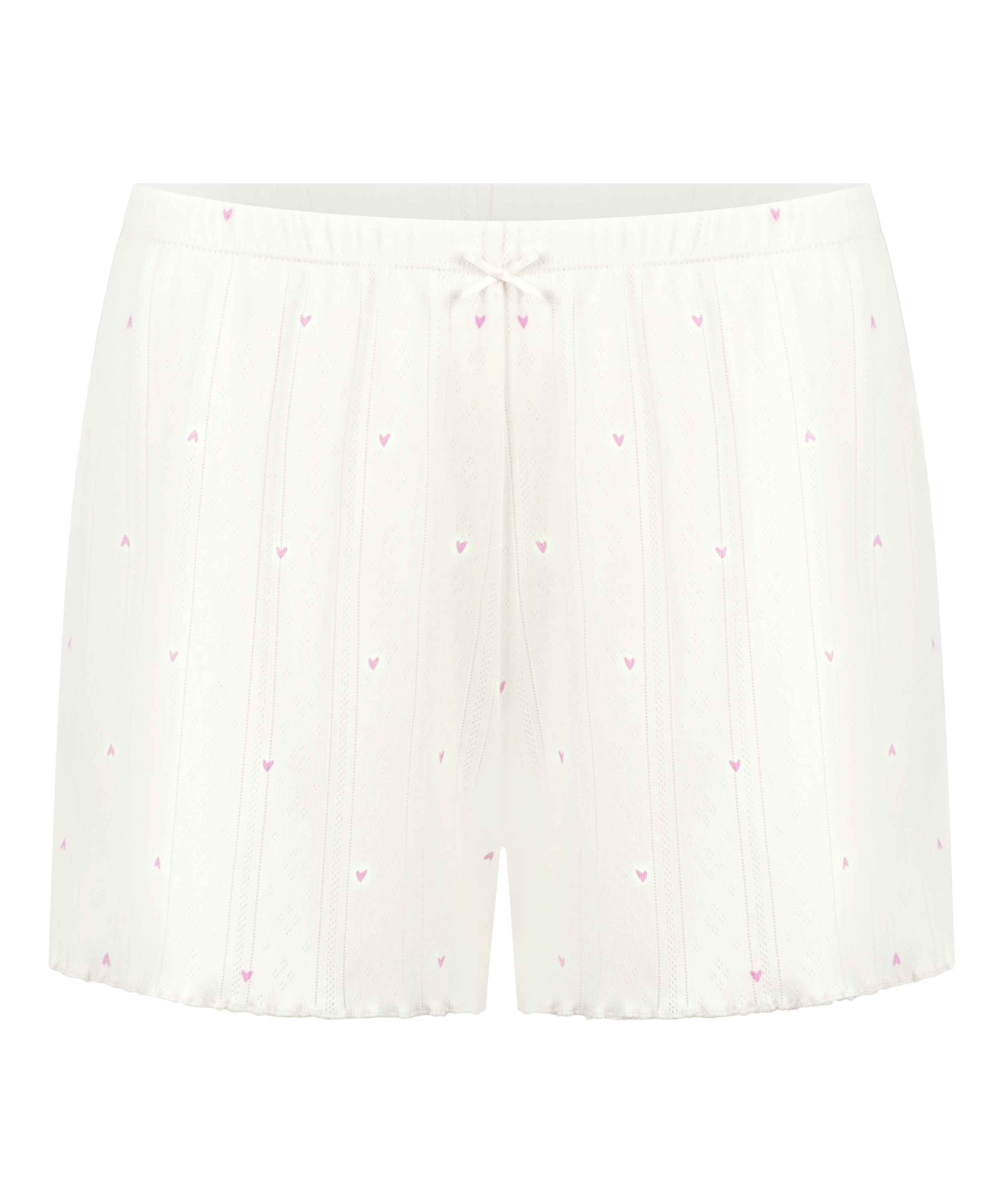 Szukasz najsłodszych szortów do leniuchowania? Te bawełniane szorty pointelle ozdobione małymi serduszkami i mają specjalnie wykończenie, co nadaje im wyjątkowo dziewczęcego charakteru. Miękkie, przewiewne i bardzo urocze, idealnie nadają się na ciepłe wieczory lub do relaksu w stylowy sposób. Chcesz wyglądać stylowo? Połącz je z dopasowanym topem pointelle.