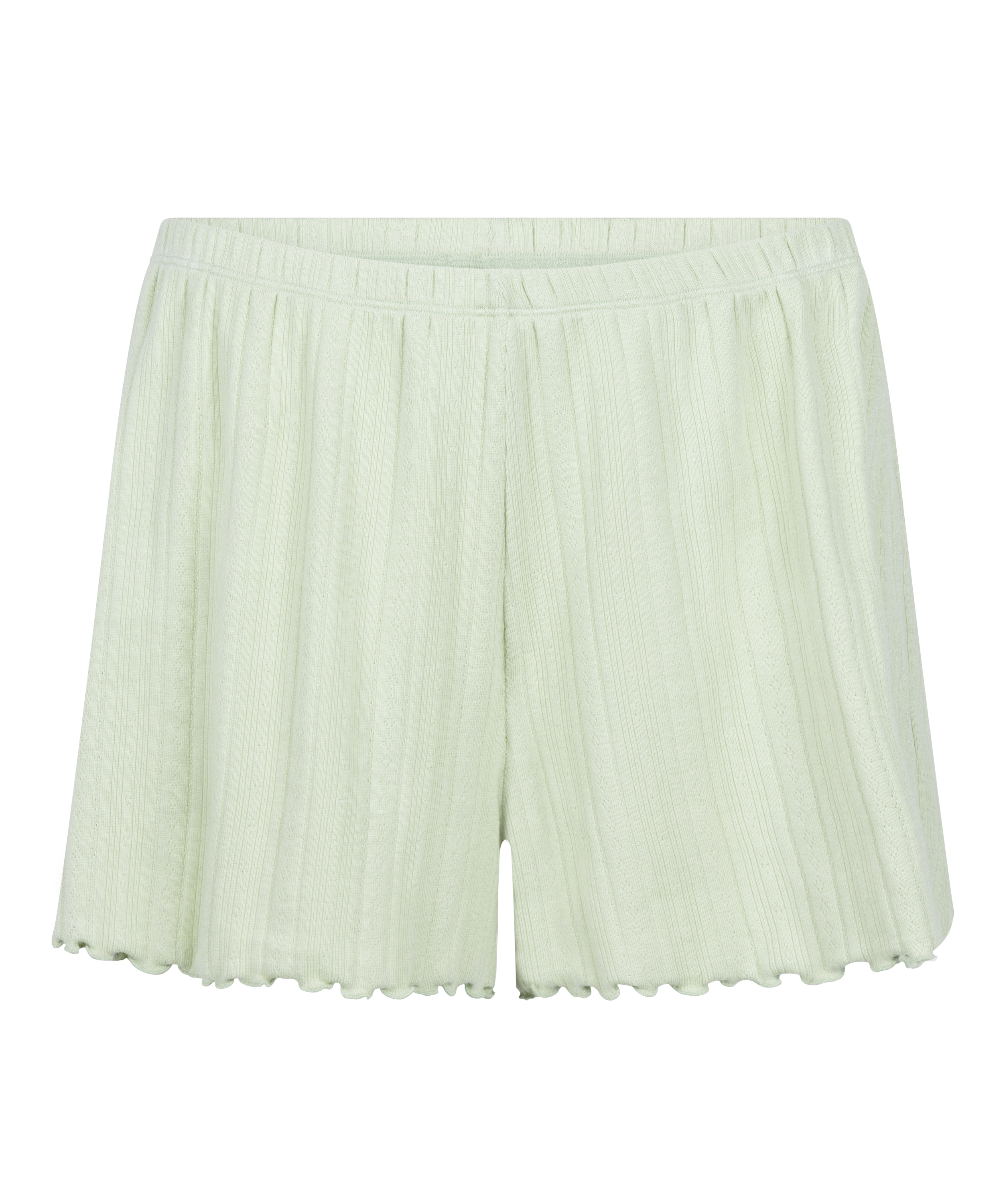 Słodkie, miękkie i stworzone do relaksu w stylowy sposób! Te szorty pointelle mają wygodną elastyczną talię i zabawne falbany, dzięki czemu są idealnym wyborem na chwile relaksu i dobrego samopoczucia.