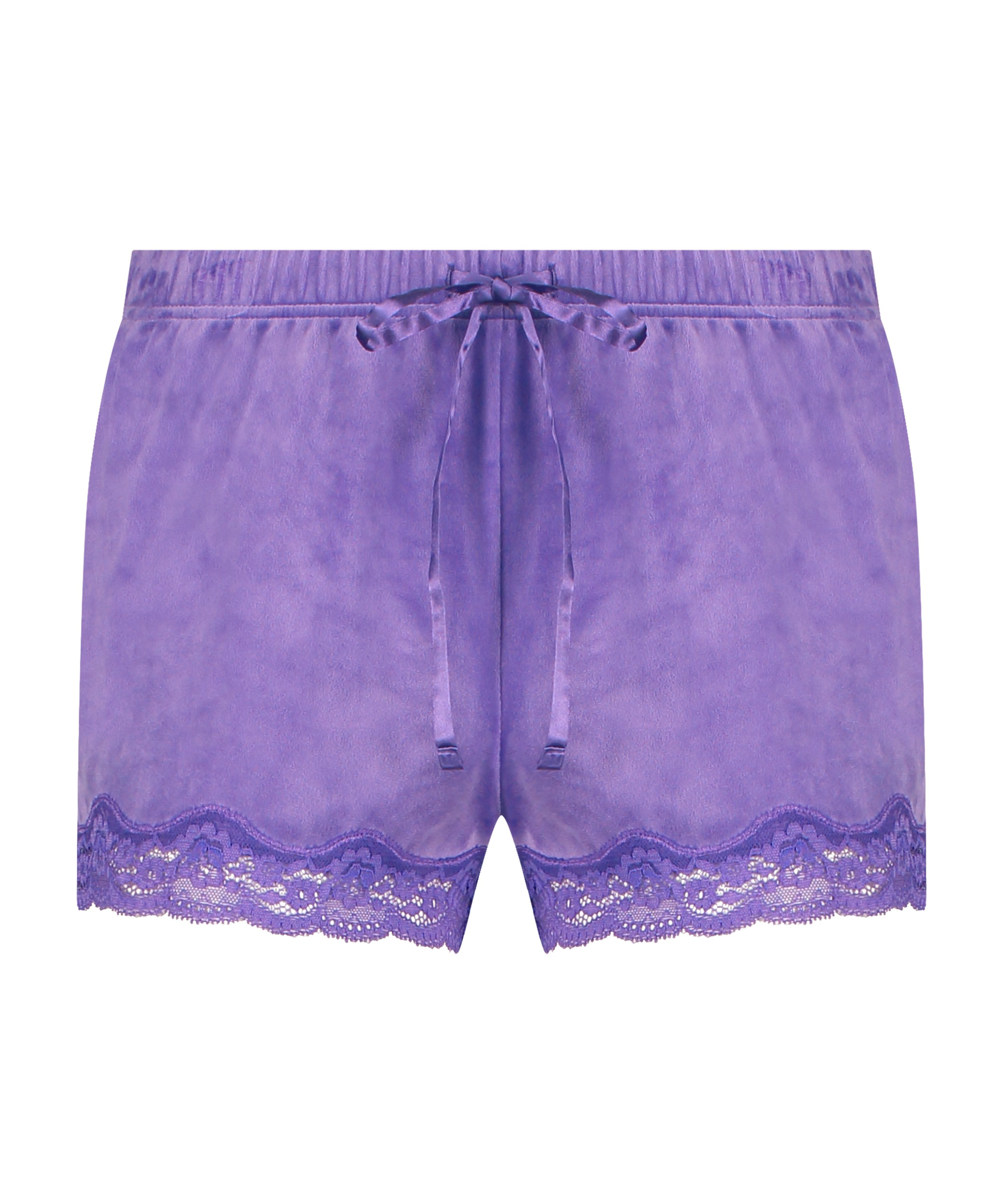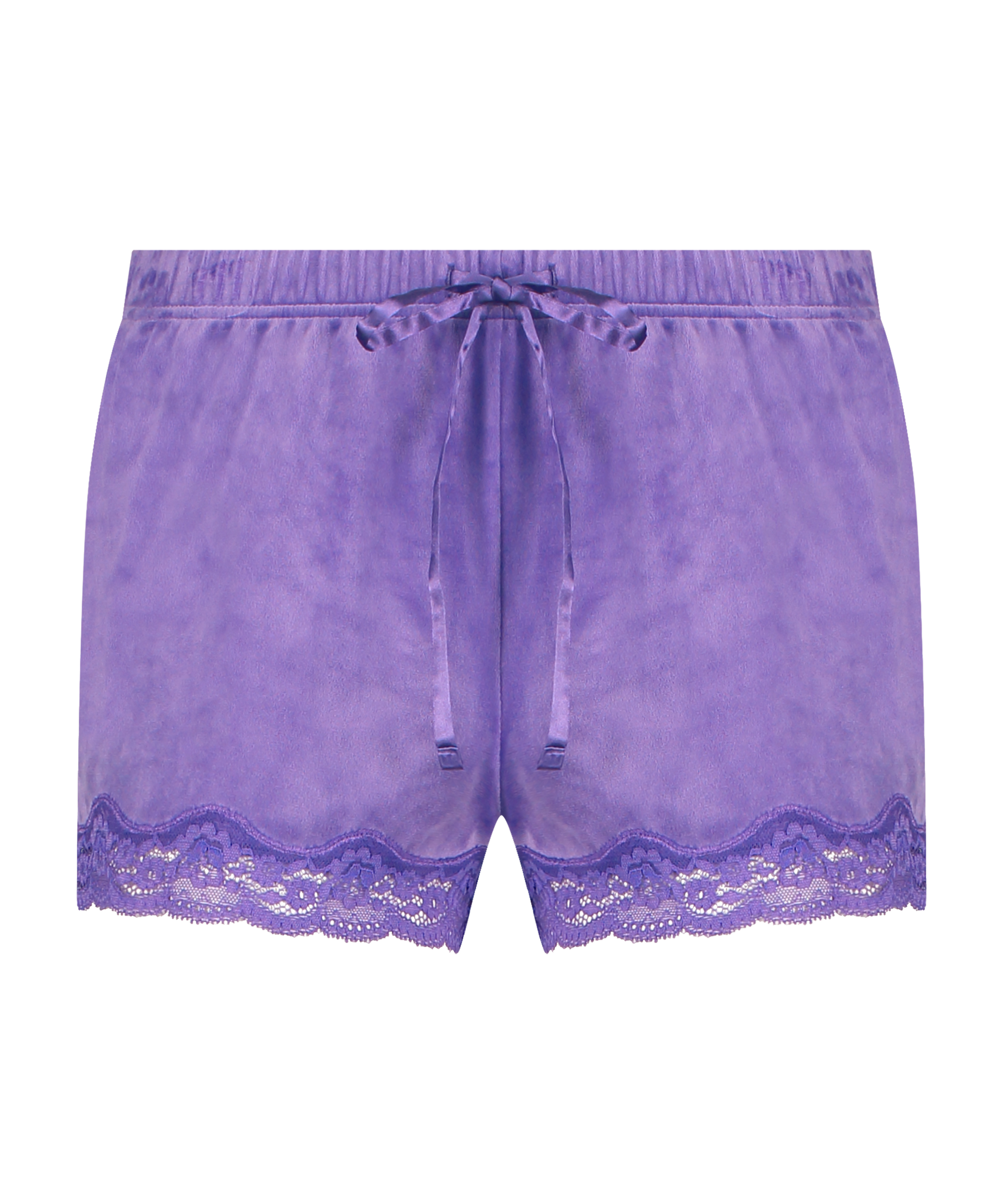 Poczuj się super seksownie i kobieco w tych szortach z miękkiego materiału! Szorty wykonane są z aksamitnej tkaniny i wykończone koronką. Połącz z pasującymi dodatkami.