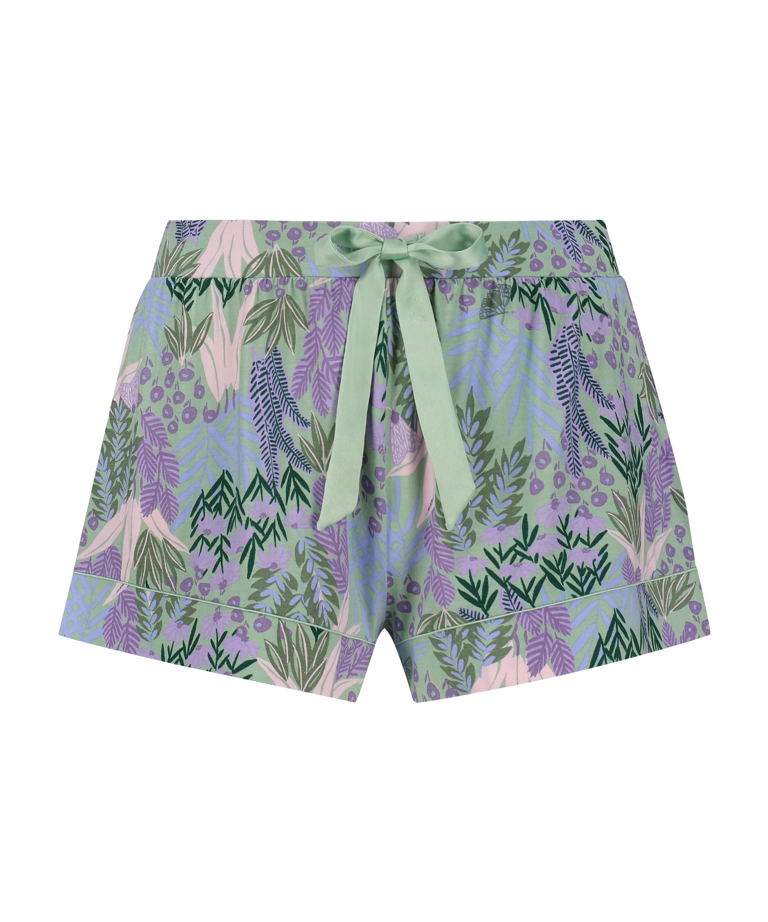 Wskocz do łóżka w tych uroczych szortach piżamowych, wykonanych z miękkiego i przyjemnego w dotyku materiału! Wykończone koronkową lamówką wokół nogawek i satynową kokardką z przodu.