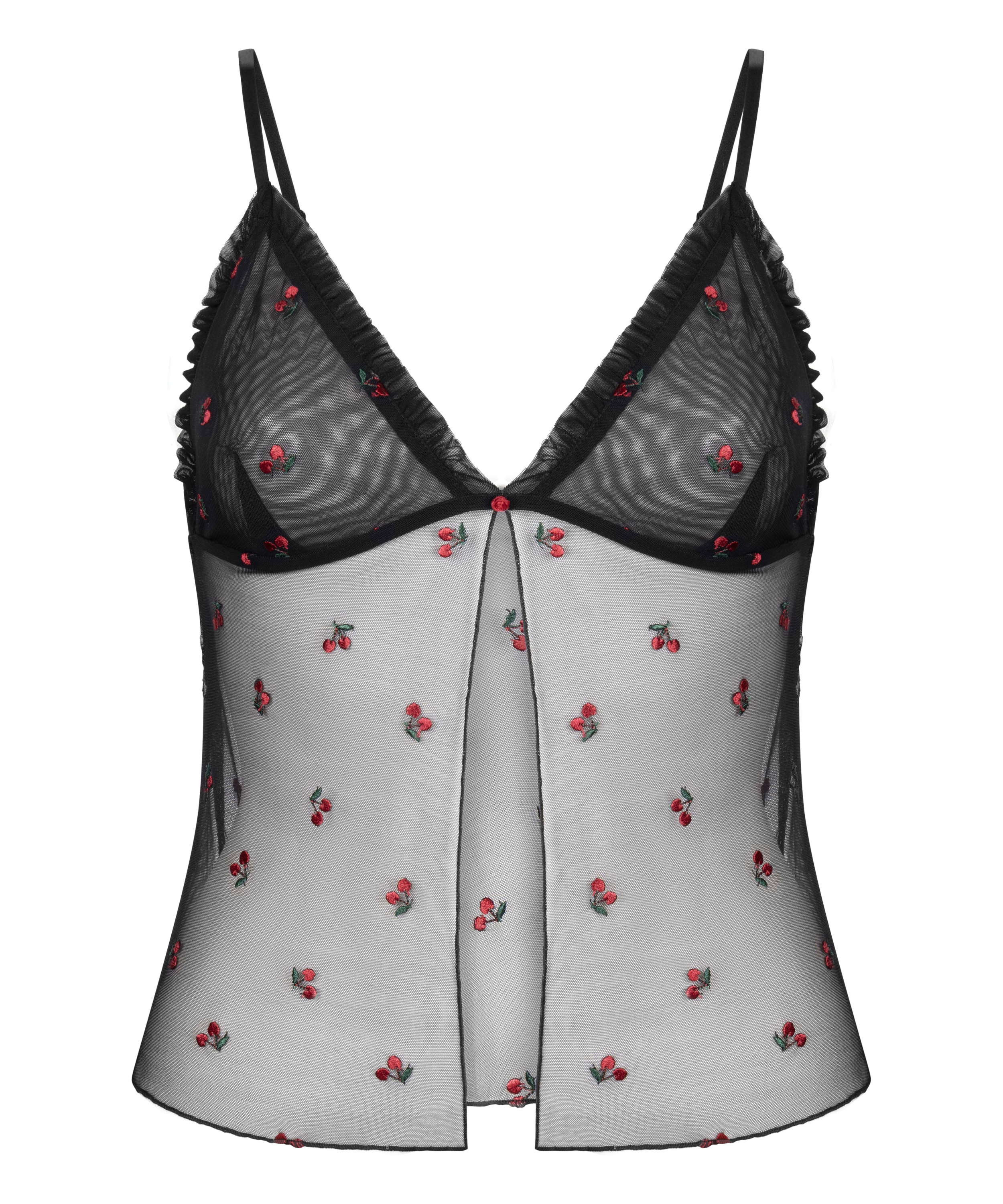 Ten siateczkowy top na ramiączkach to kwintesencja kobiecości z nutą zadziorności. Ozdobiony delikatnym haftem z różami i regulowanymi paskami, został zaprojektowany tak, aby idealnie dopasowywał się do ciała. Połącz go z pasującymi szortami lub załóż pod marynarkę, aby uzyskać stylizację łączącą w sobie słodycz i awangardę. Niezbędny element Twojej garderoby inspirowanej bielizną.