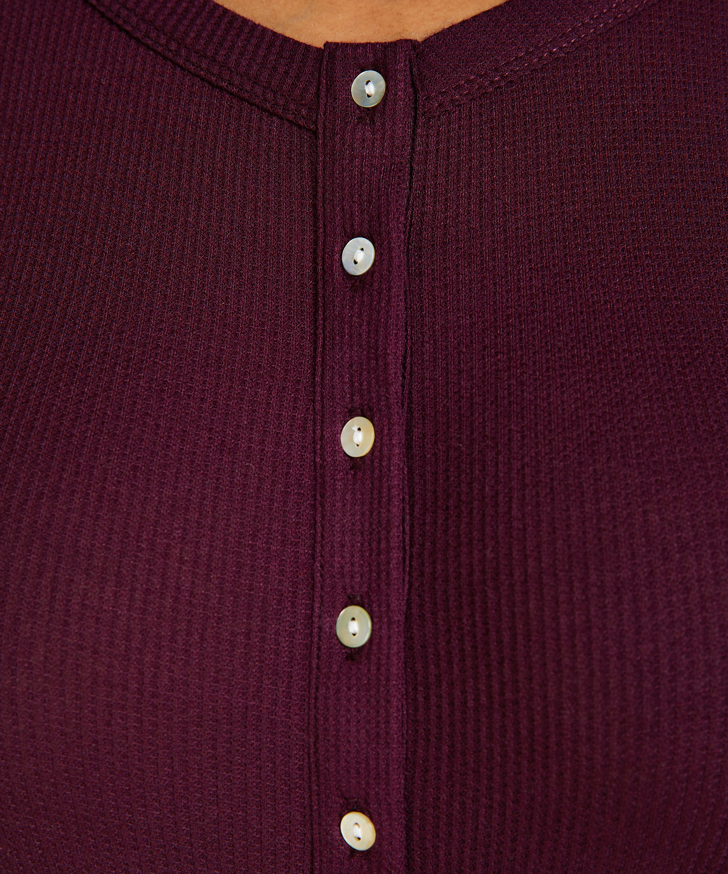 Ten top piżamowy jest idealny na relaksujący dzień lub aby zaznać długiego, komfortowego snu. Wykonany jest z gofrowanej tkaniny i można go łączyć z różnymi spodniami od piżamy.