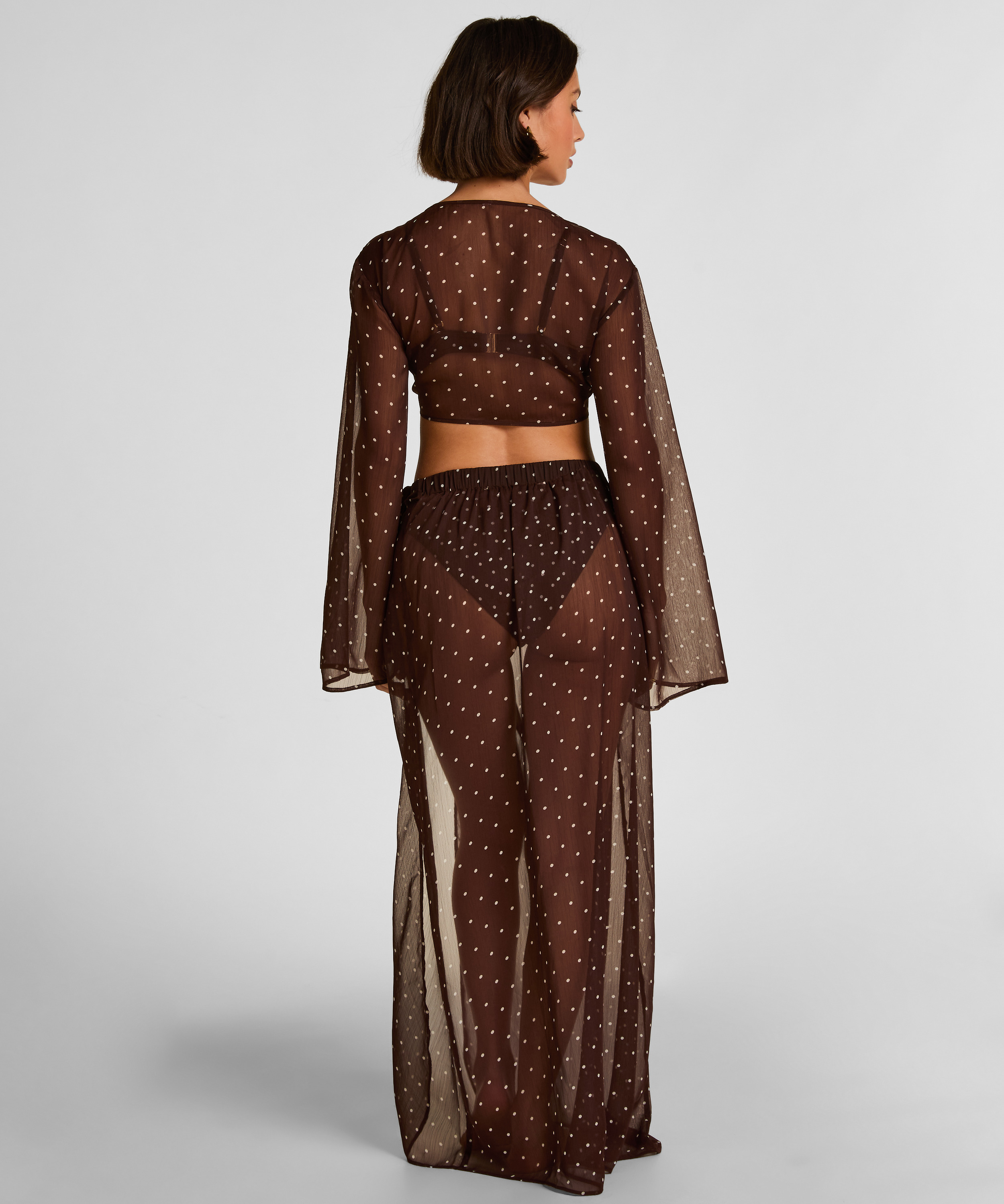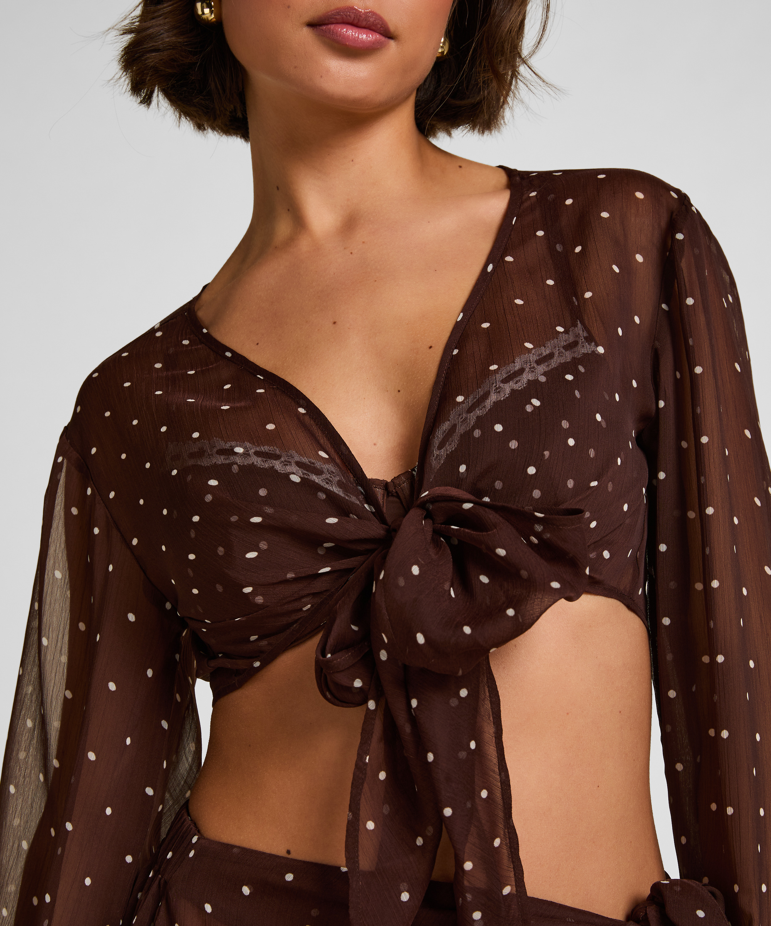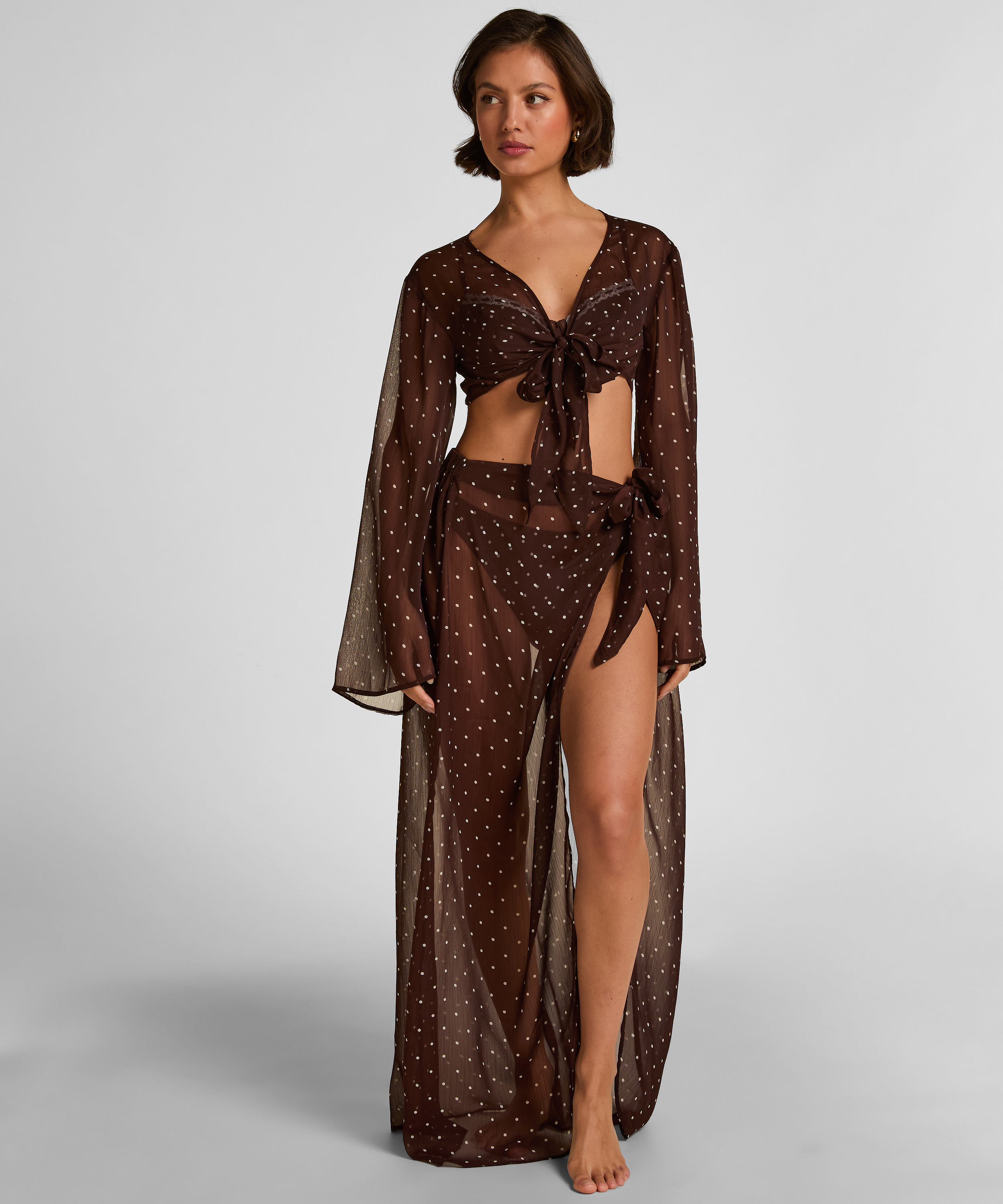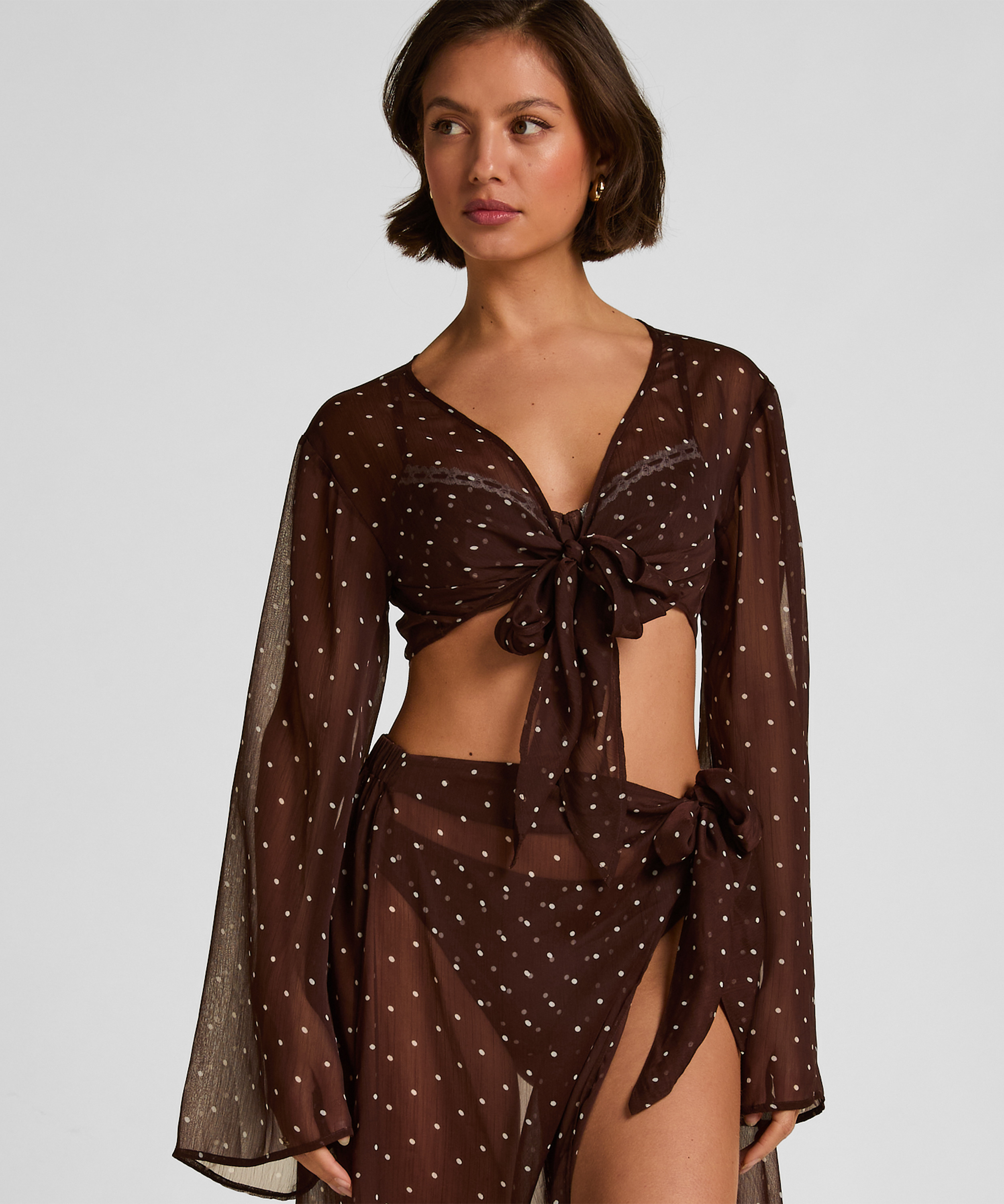 Podnieś swój plażowy look dzięki temu eleganckiemu topowi kopertowemu z długimi rękawami—Twojej nowej ulubionej warstwie na słoneczne dni i relaksujące nadmorskie klimaty. Wykonany z lekkiej, oddychającej tkaniny, ten top kopertowy zapewnia swobodny spadek i komfort. Długie rękawy zapewniają dodatkowe krycie, a wiązanie z przodu pozwala dopasować krój dokładnie tak, jak lubisz. Niezależnie od tego, czy wypoczywasz przy basenie, spacerujesz wzdłuż linii brzegowej, czy delektujesz się orzeźwiającym drinkiem w barze plażowym, ten top kopertowy dodaje szykownej, swobodnej elegancji każdej letniej stylizacji.