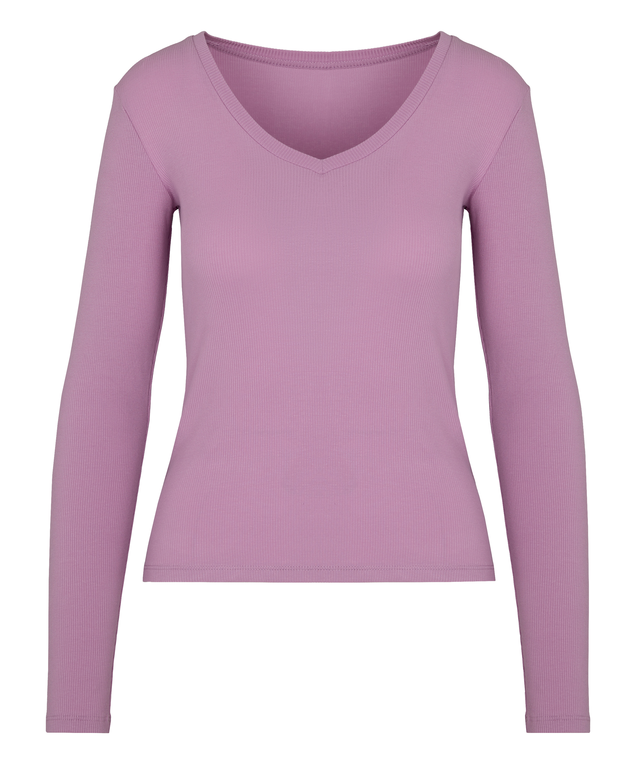 Top w prążki długimi rękawami - Fioletowy