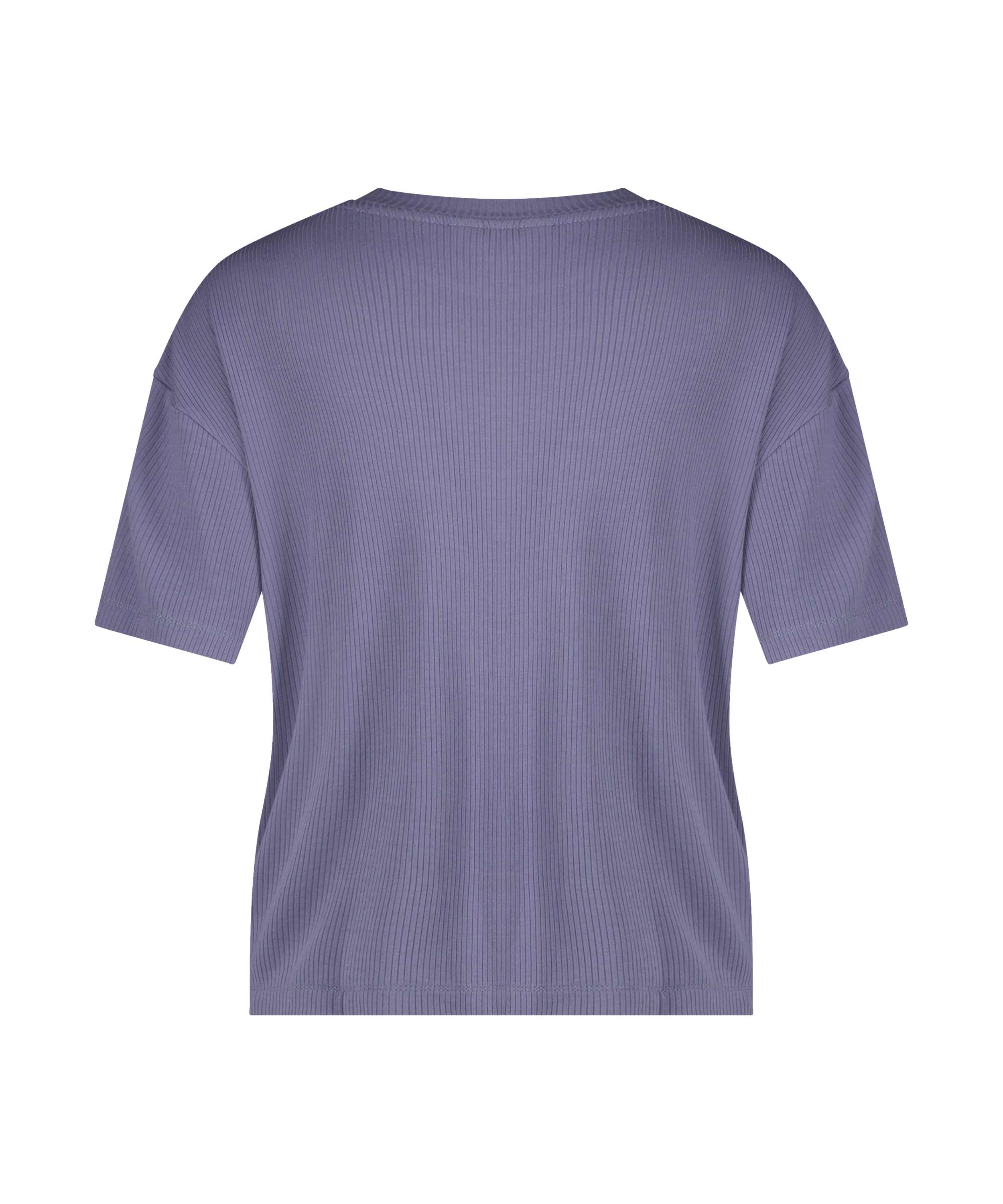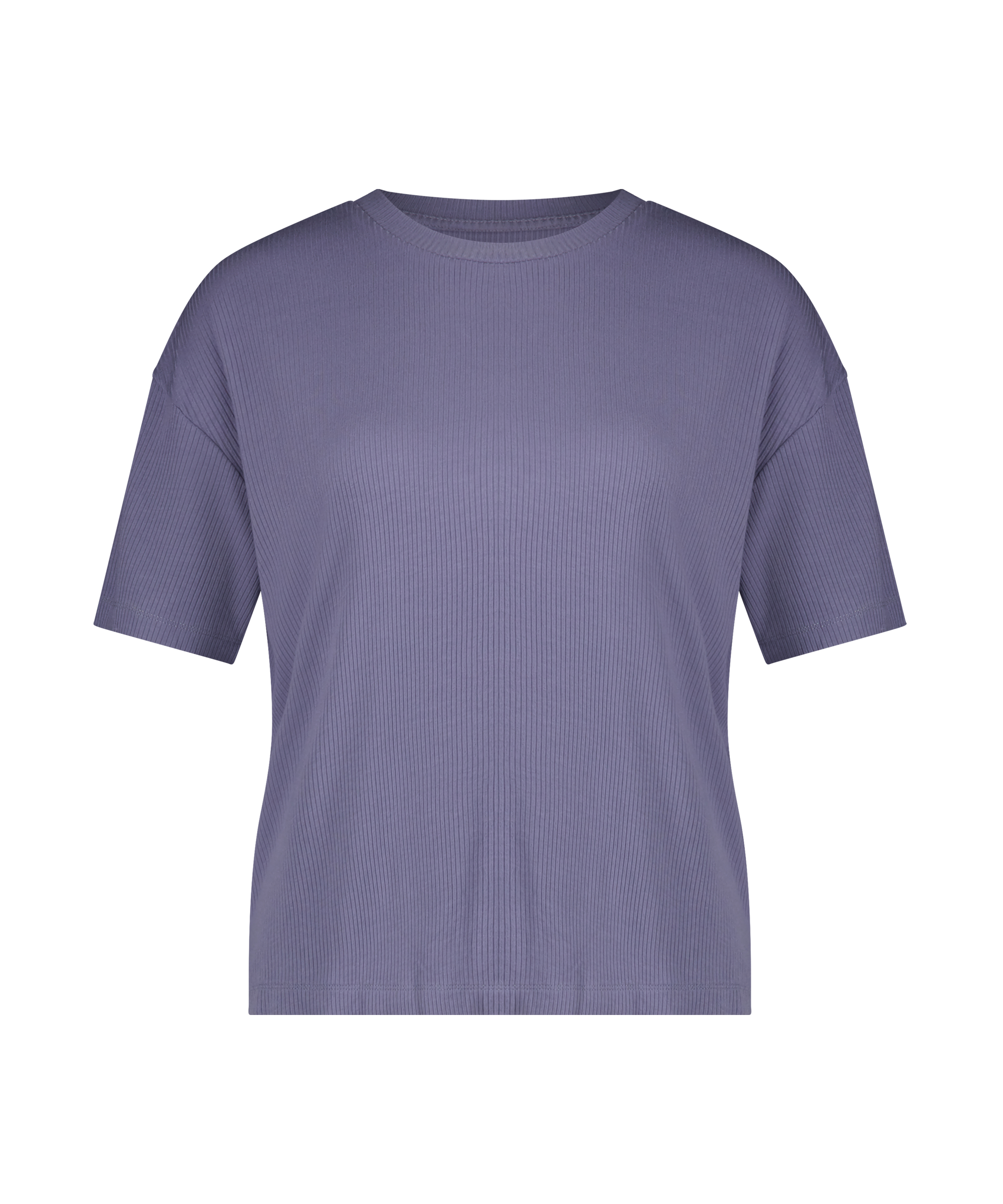 Ta góra od piżamy z krótkimi rękawami jest wyjątkowo wygodna! Top został wykonany z tkaniny w prążki i przyjemnie się rozciąga. Połącz go z pasującymi produktami.