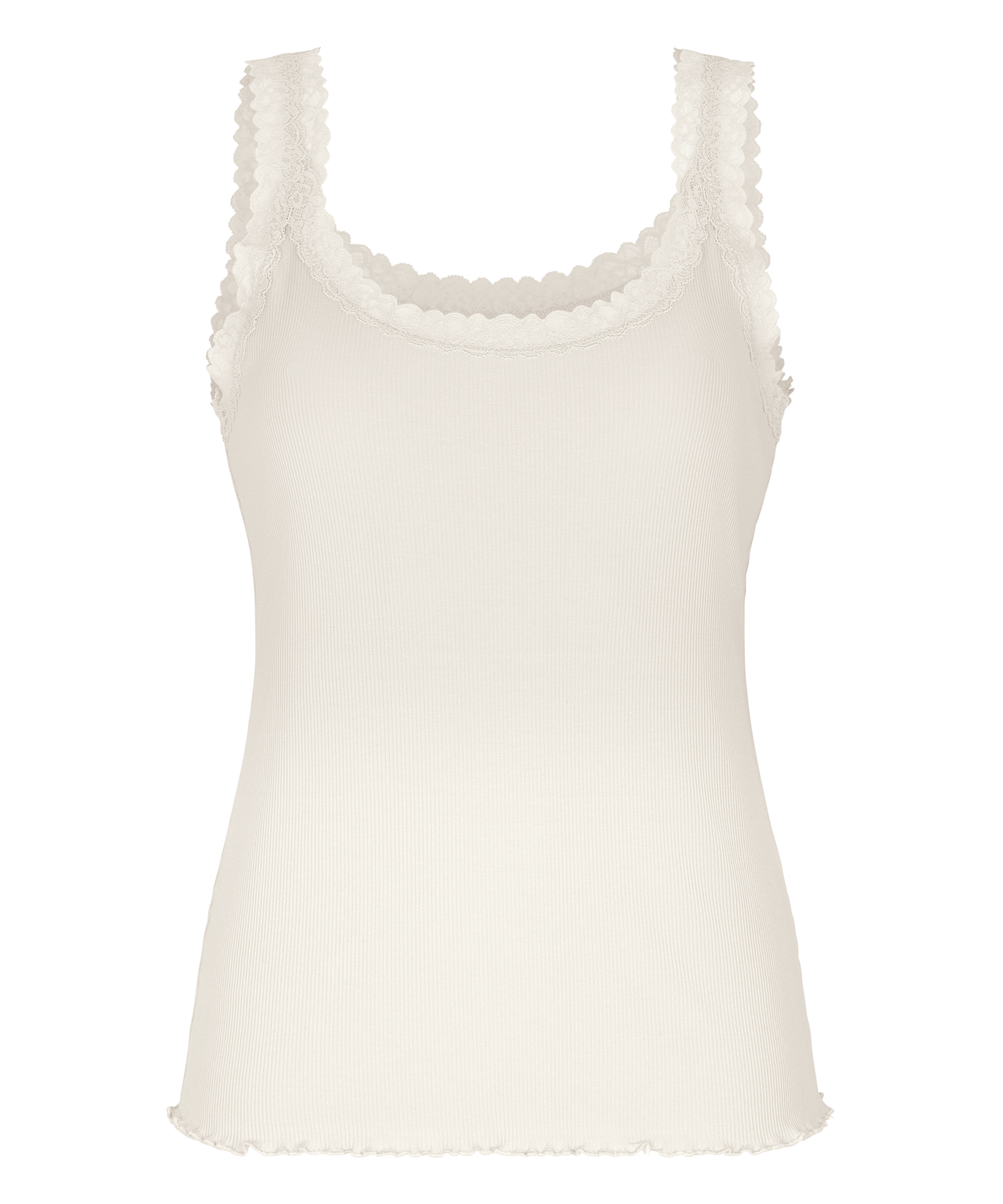 Top z Prążkowanej Dzianiny z Koronką - Biały