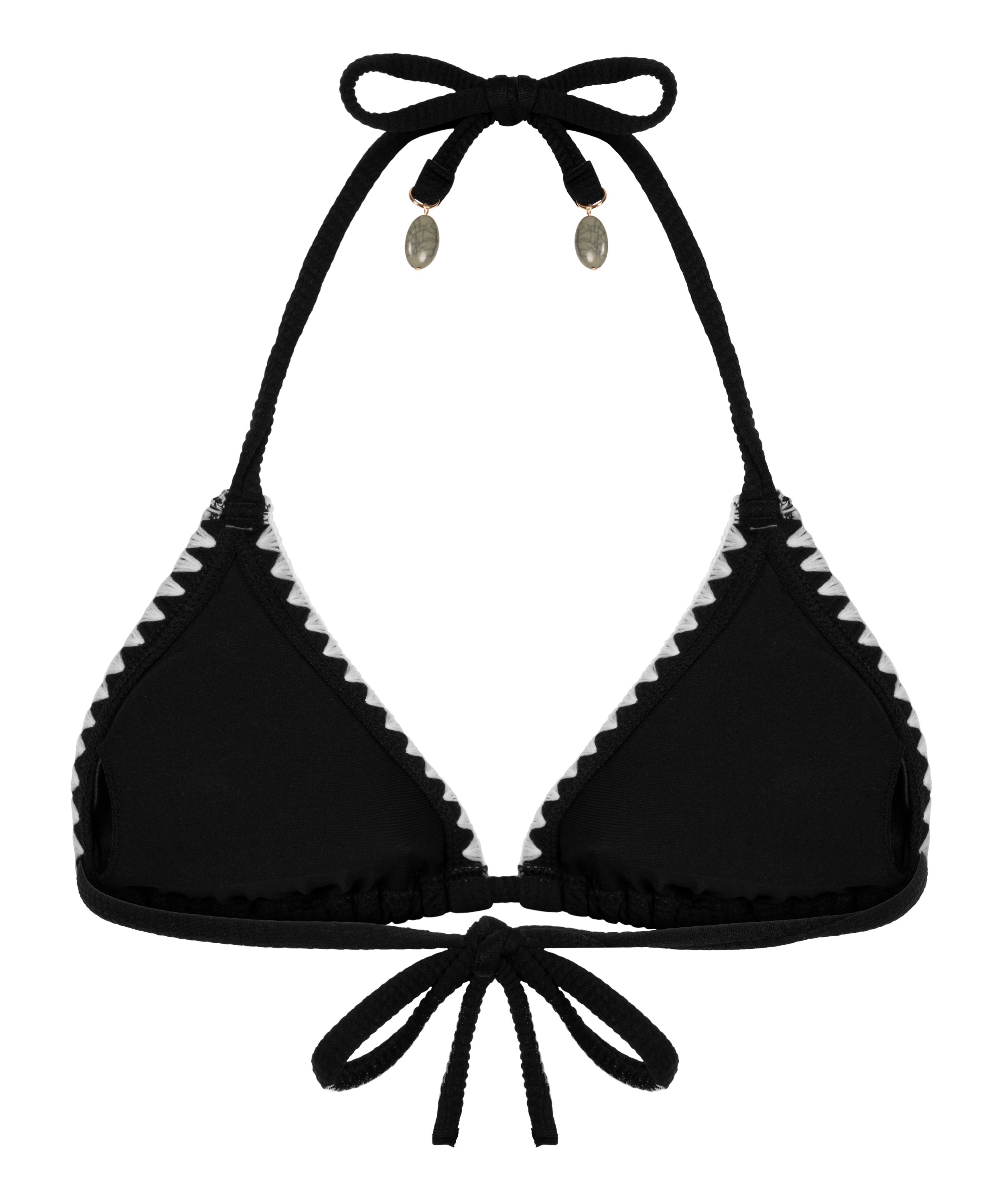 Ten trójkątny top od bikini łączy w sobie delikatne dzianinowe detale z ponadczasowym fasonem, zapewniając niezwykle szykowny wygląd. Regulowane dopasowanie gwarantuje wygodę i wsparcie, dzięki czemu strój doskonale nadaje się do wypoczynku lub pływania. Połącz z pasującym dołem, aby uzyskać skoordynowany zestaw gotowy na plażę! Nasze trójkątne staniki są w pełni regulowane dzięki wiązaniu na szyi i plecach, co pozwala dopasować poziom zakrycia miseczek. Jeśli jednak chcesz większego zakrycia, wybierz rozmiar większy.