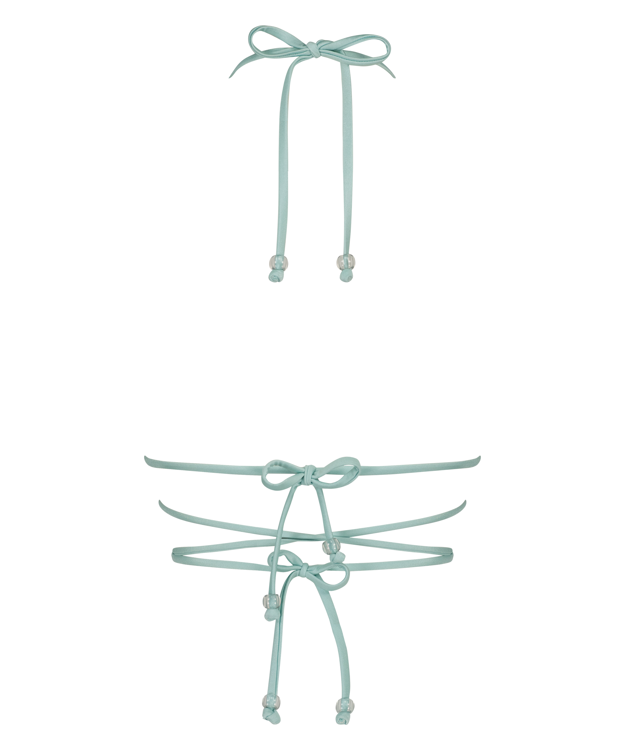 Pokaż się od najlepszej strony w tej górze od bikini! Wiązanie na szyi i plecach ułatwia zakładanie i regulację. Pomiędzy piersiami znajduje się ozdoba w kształcie pierścienia, ukazująca paski w talii. Możesz nosić tę stylizację na wiele sposobów, idealnie dopasowując ją do swojego gustu. Połącz z dopasowanym dołem od bikini!