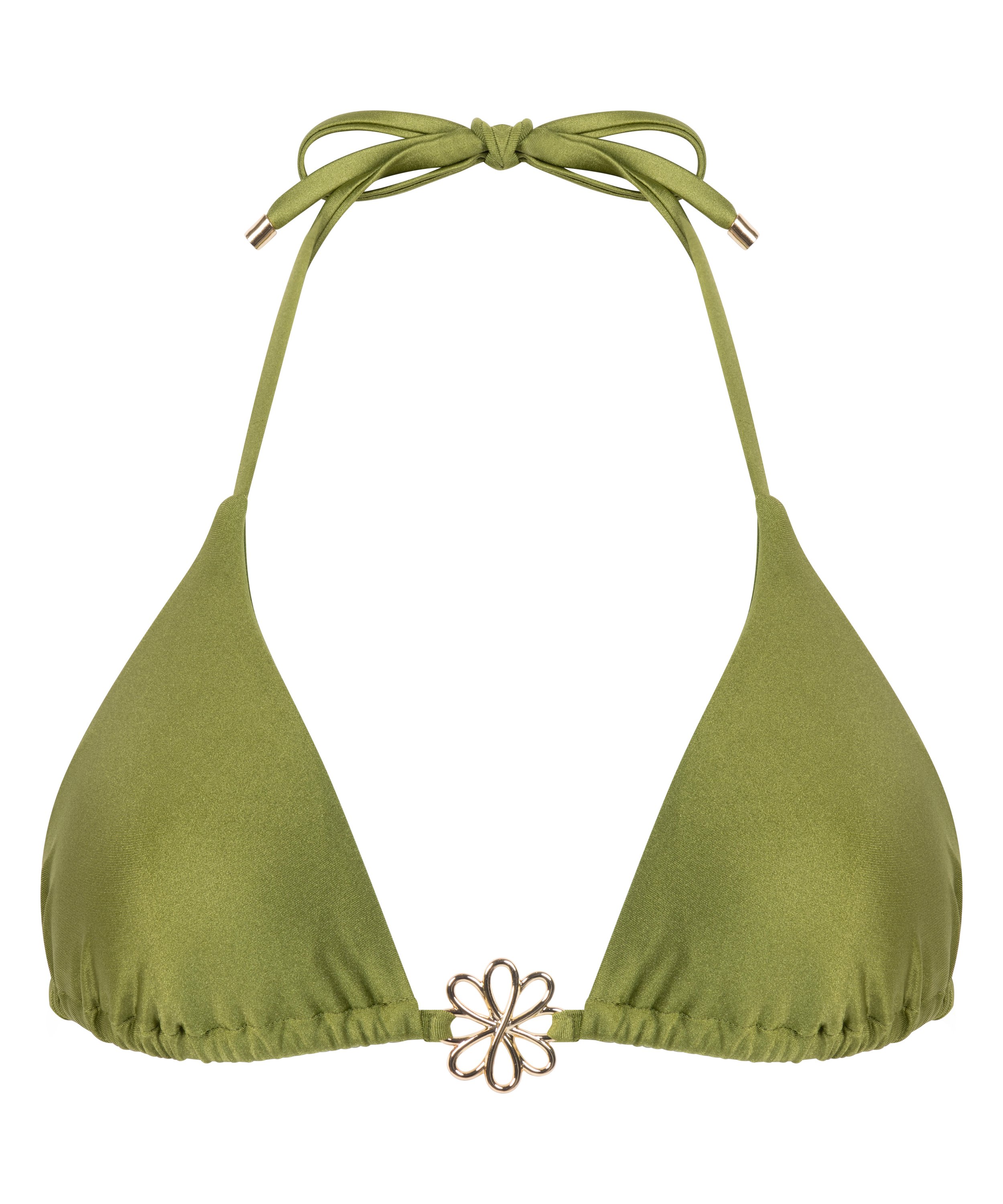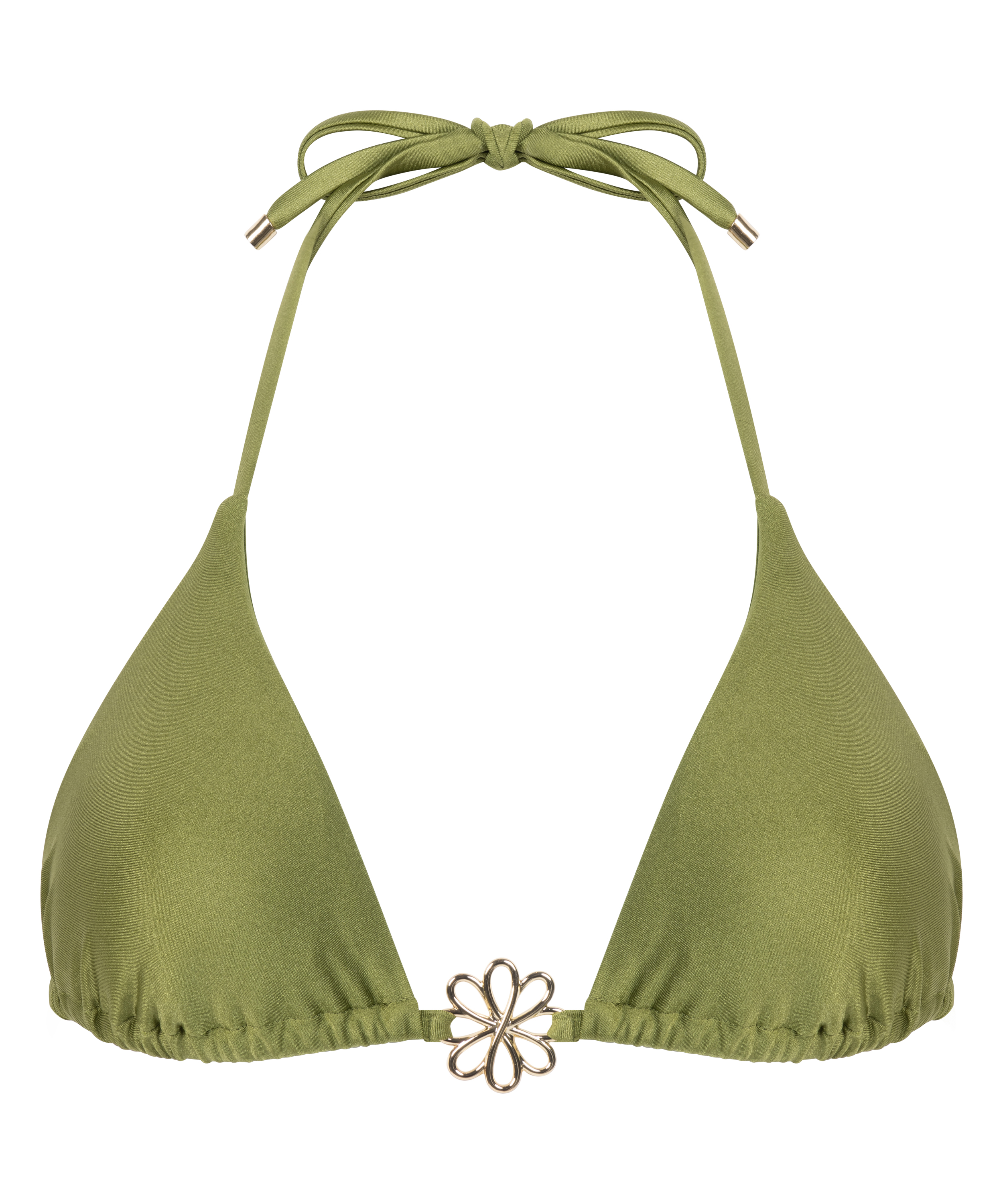 Wygrzewaj się w słońcu dzięki naszemu urzekającemu topowi od bikini! Ten element, ozdobiony unikalnym kwiatowym detalem pośrodku, który pięknie błyszczy w słońcu, z pewnością przyciągnie wzrok. Połącz go bez wysiłku z pasującym dołem, aby stworzyć nieskazitelny zestaw, który emanuje elegancją i stylem!