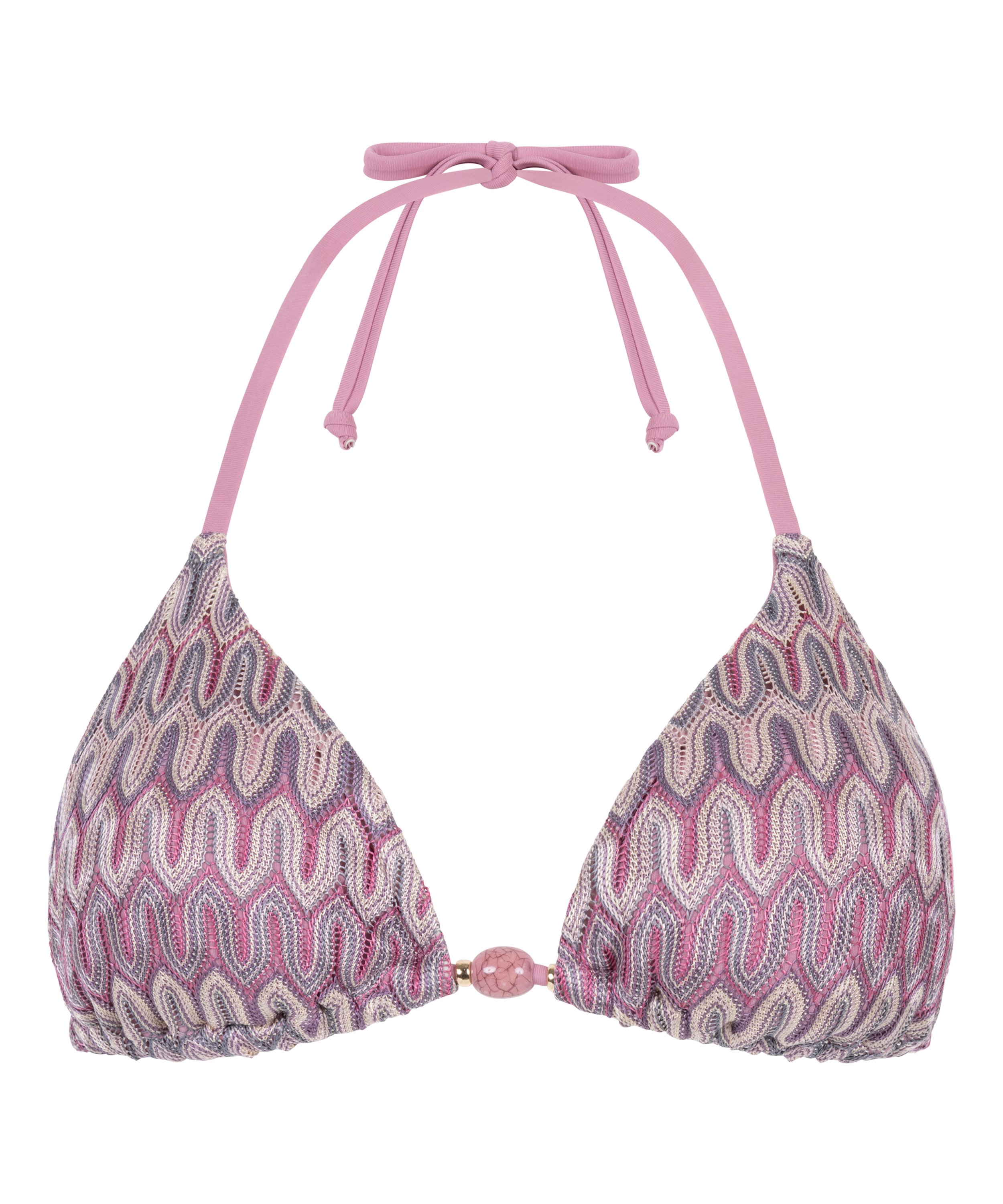 Ten top od bikini przyciąga spojrzenia na plaży. Zaprojektowany z myślą o ponadczasowym wyglądzie, ten top zapewnia lekkie wsparcie i regulowane wiązanie, dzięki czemu można go idealnie dopasować. Trójkątne miseczki tworzą naturalny kształt, a ćwieki dodają stylowego akcentu. Nasze trójkątne staniki są w pełni regulowane dzięki wiązaniu na szyi i plecach, co pozwala dopasować poziom zakrycia miseczek. Jeśli jednak chcesz większego zakrycia, wybierz rozmiar większy.