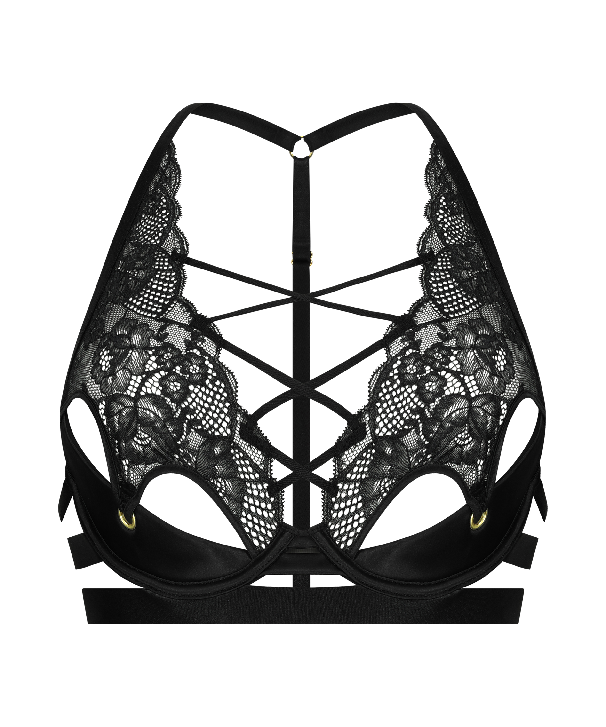 Ten biustonosz zapewni Ci zmysłowy wygląd! Został ozdobiony koronką, detalami w postaci paseczków i elementami wykonanymi z półprzezroczystej tkaniny. Połącz go z pasującymi produktami. Biustonosz jest częścią kolekcji Private.