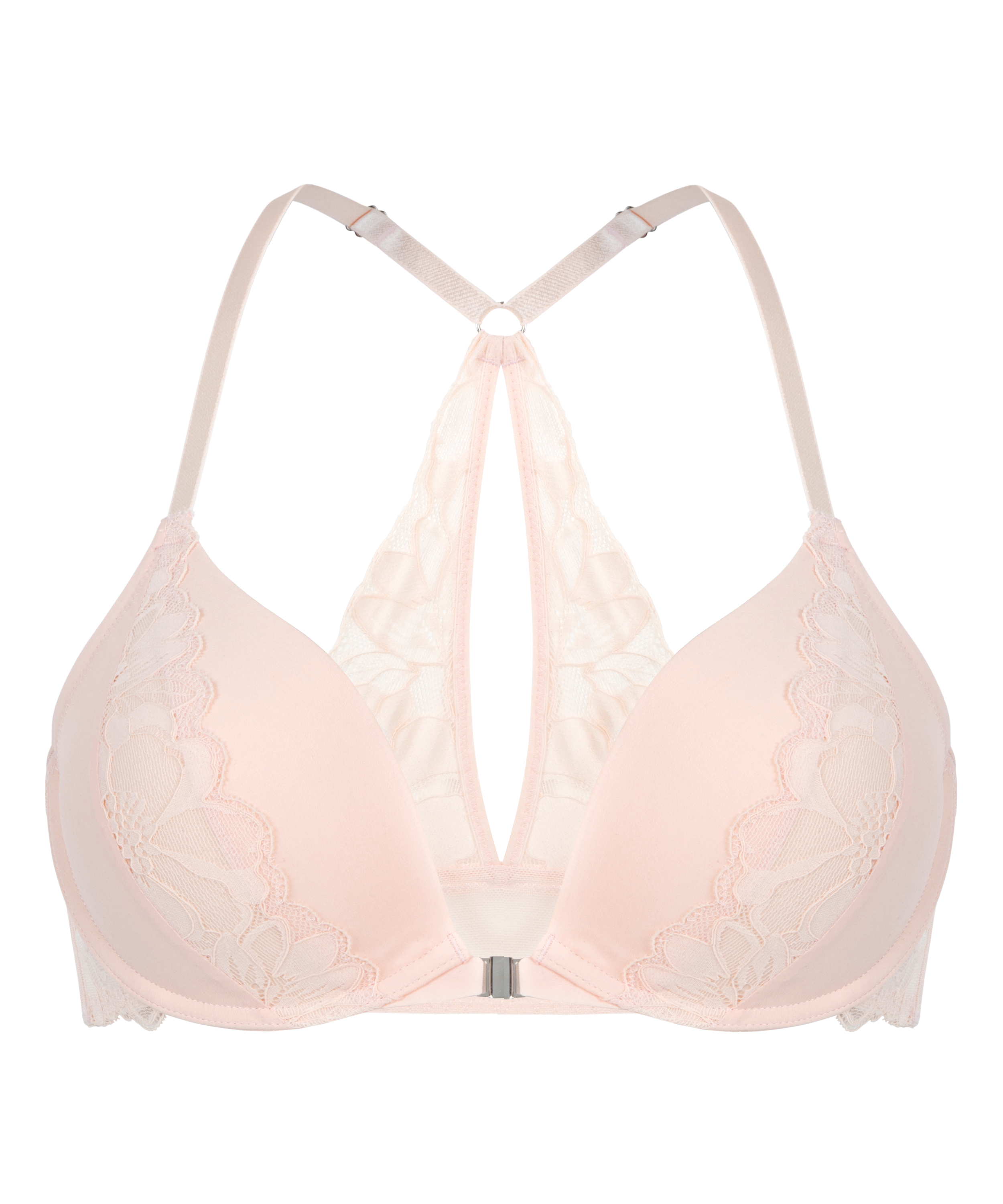 Wzbogać swoją kolekcję bielizny dzięki naszemu biustonoszowi Ali! Biustonosz z usztywnianymi miseczkami typu push-up ozdobionymi koronką i delikatną koronką na plecach dodaje elegancji i uroku. Dzięki wygodnemu zatrzaskowi z przodu jest zarówno stylowy, jak i praktyczny. Uzupełnij zestaw, łącząc go z dopasowanymi majtkami, aby uzyskać oszałamiający strój.