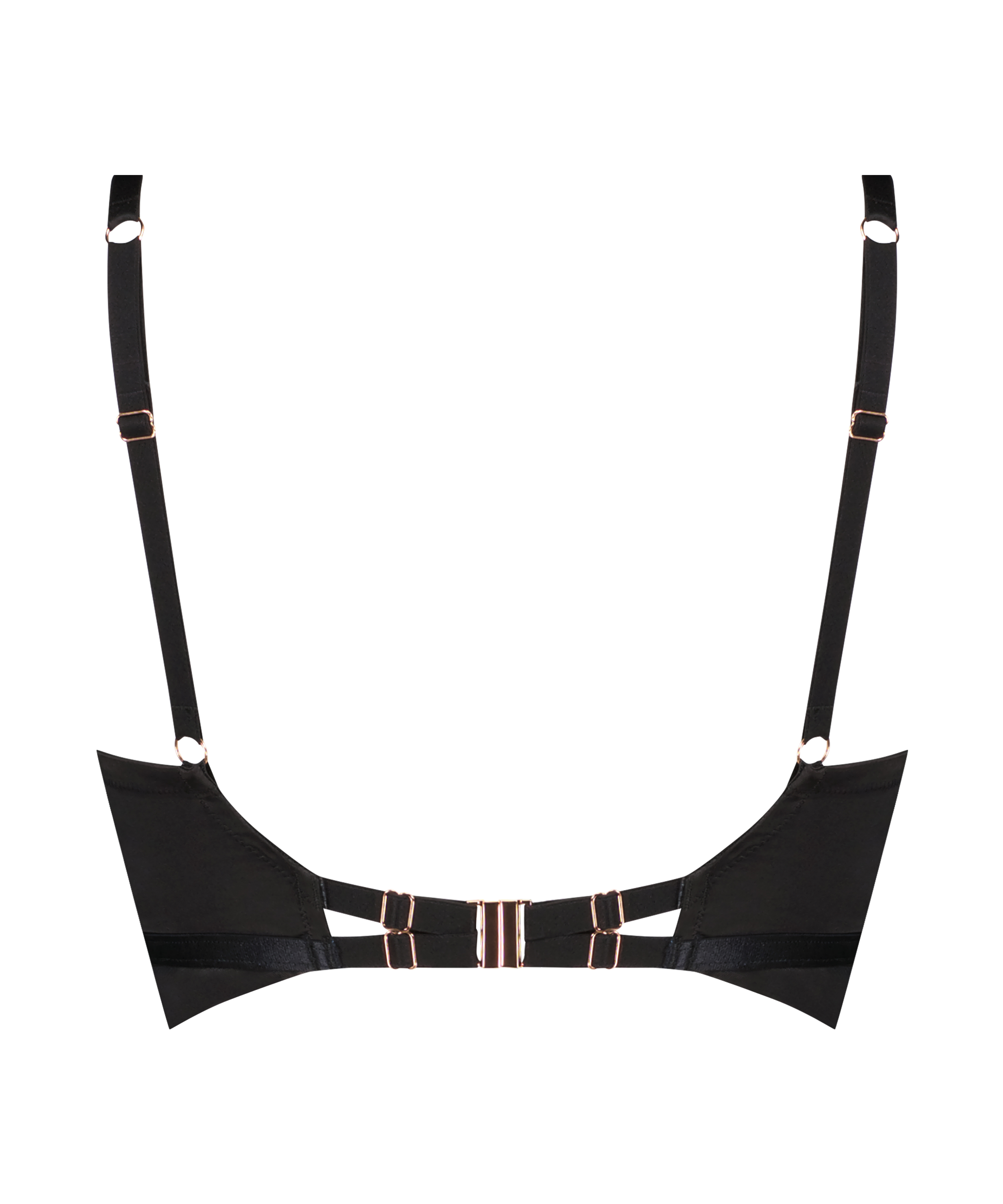 Poczuj się oszałamiająco w tym luksusowym i eleganckim biustonoszu! Długi krój ze wspaniałą kwiecistą koronką i wysokiej jakości siateczką, która dopasowuje się do skóry. Wyściółka jest ukształtowana wewnątrz biustonosza, co zapewnia idealne wsparcie i dopasowanie bez konieczności stosowania fiszbin. Dopasuj go do pasujących elementów z kolekcji Magdalena, aby uzupełnić swój zestaw bielizny. Część kolekcji Noir.