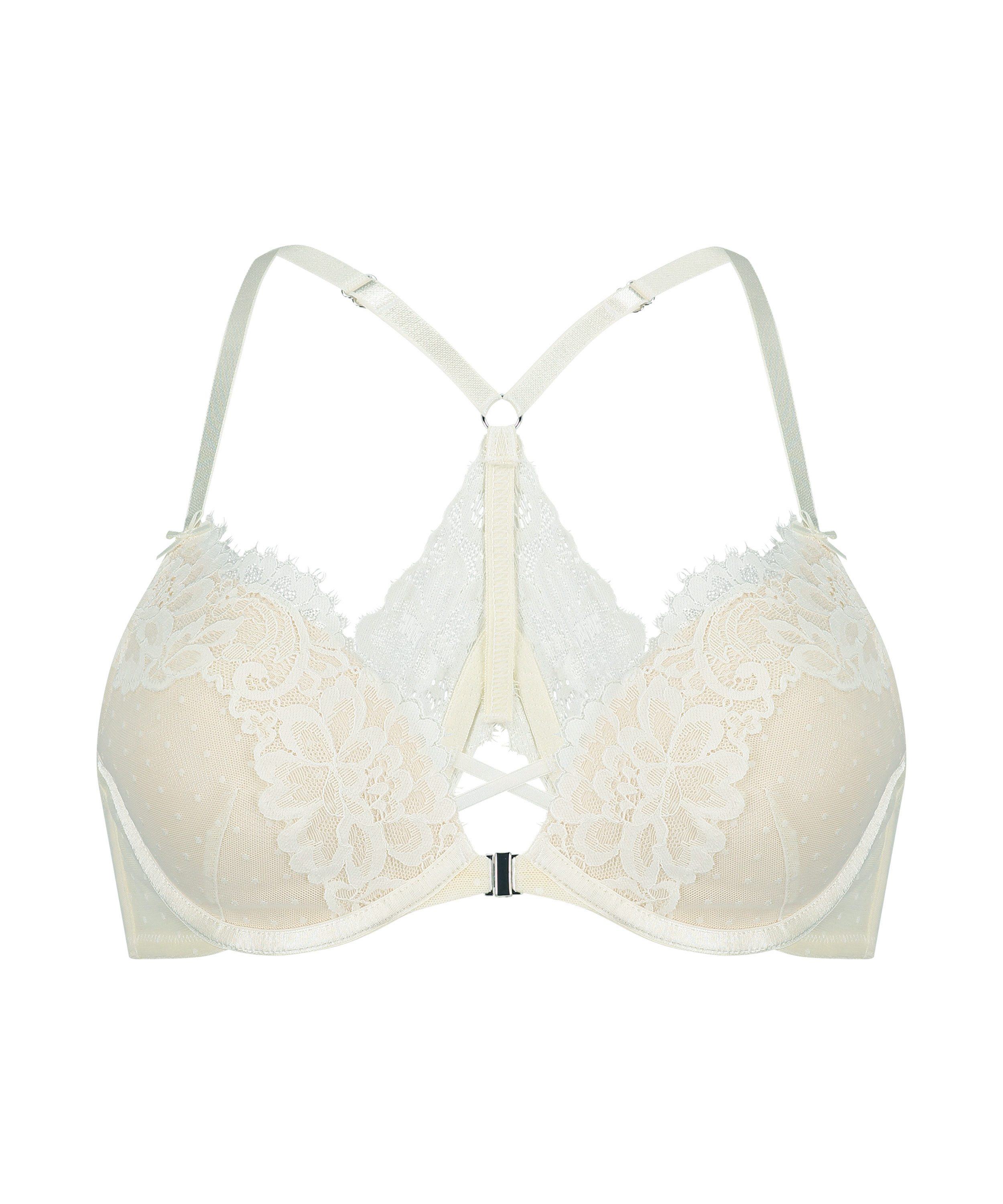 Wzbogać swoją kolekcję bielizny dzięki naszemu biustonoszowi Harmony! Biustonosz z usztywnianymi miseczkami typu push-up ozdobionymi koronką i delikatną koronką na plecach dodaje elegancji i uroku. Dzięki wygodnemu zatrzaskowi z przodu jest zarówno stylowy, jak i praktyczny. Uzupełnij zestaw, łącząc go z dopasowanymi majtkami, aby uzyskać oszałamiający strój.