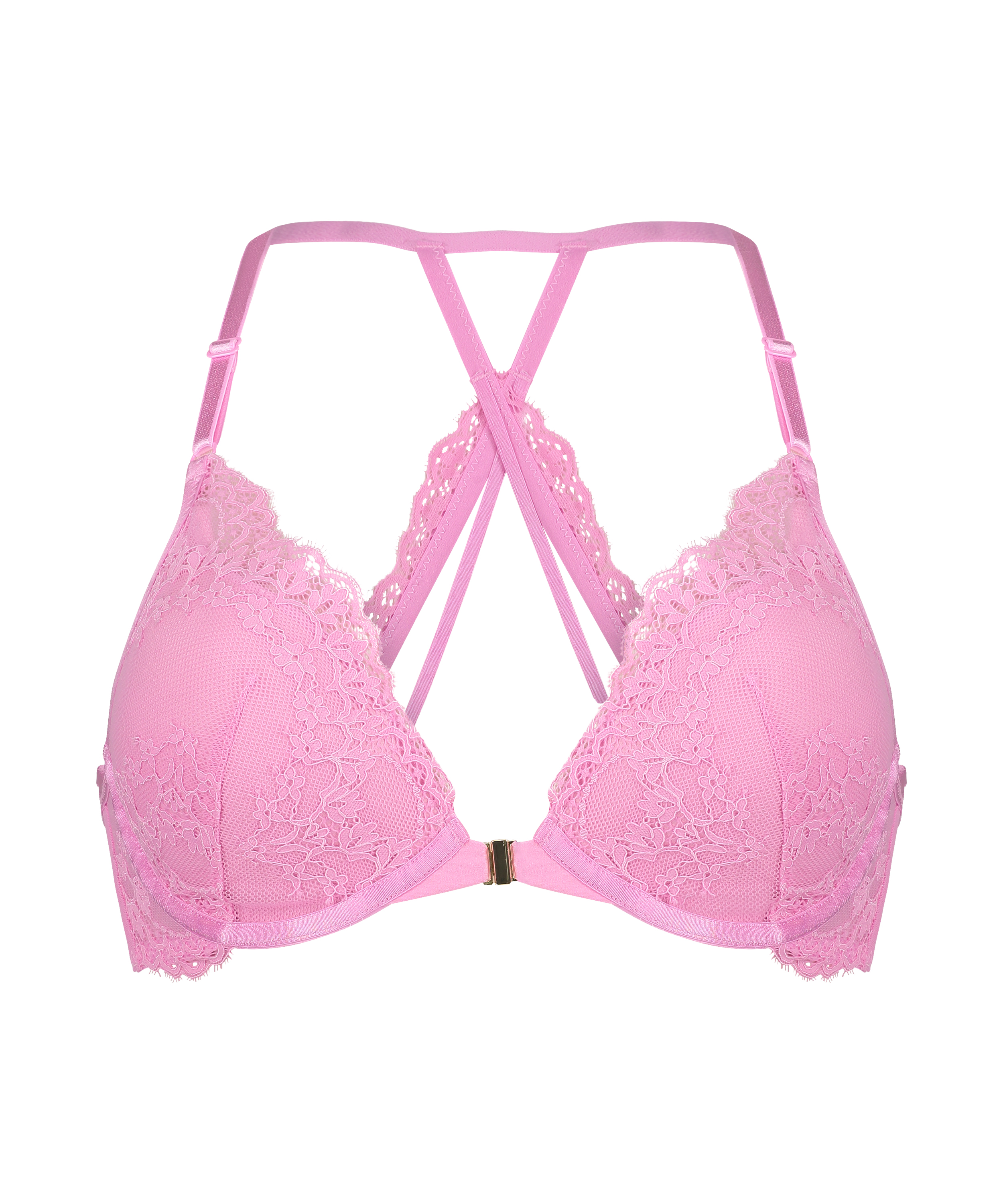 Poczuj się niesamowicie w tym biustonoszu push up! Z dużą ilością koronki, zapięciem z przodu ułatwiającym zakładanie i fasonem bokserskim na plecach. Miseczki ozdobione koronką i seksowne paseczki. Połącz go z dopasowanymi majtkami, aby stworzyć zestaw!