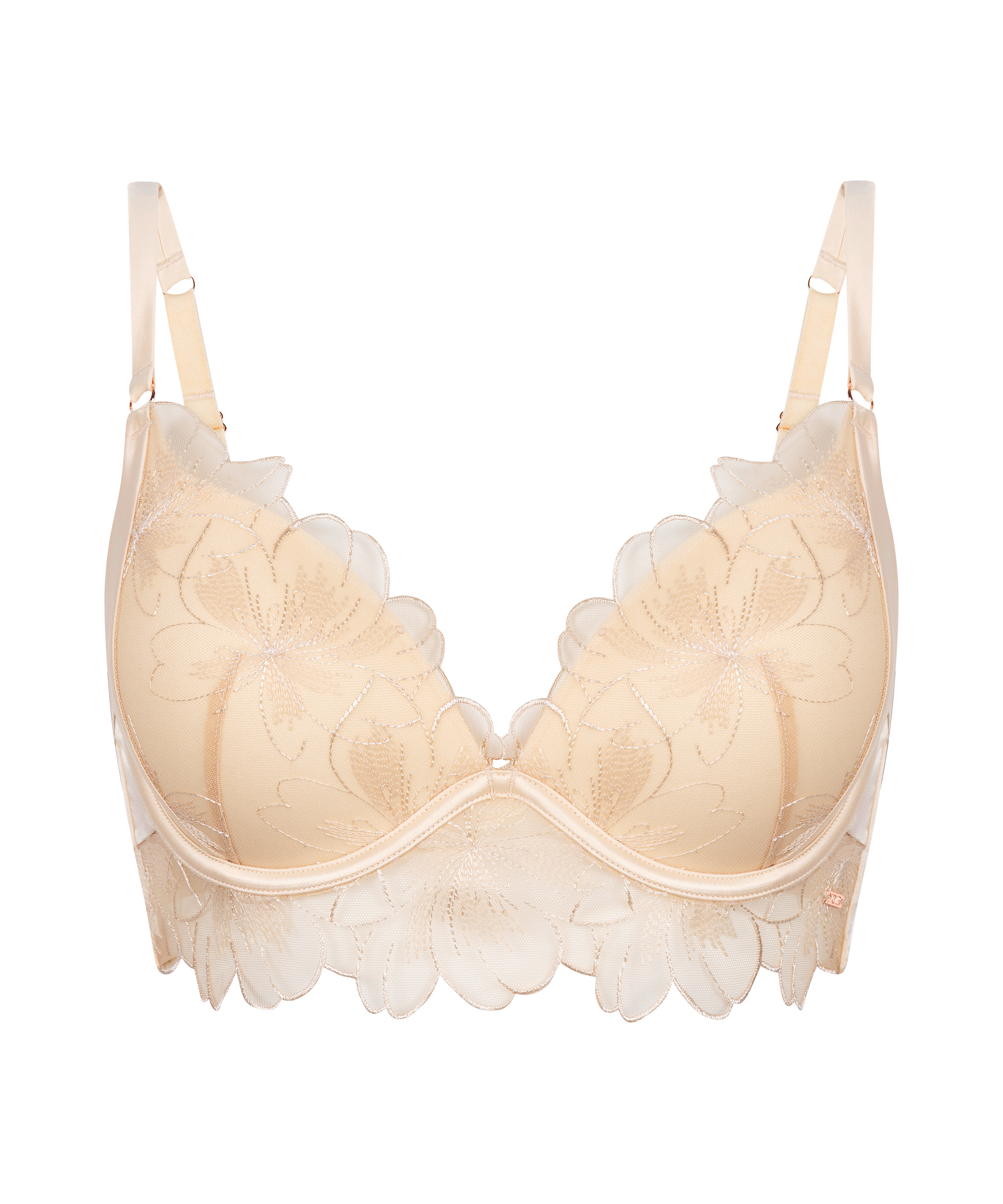 Dodaj odrobinę luksusu do swojej kolekcji bielizny dzięki usztywnianemu biustonoszowi push-up Emilia! Ozdobiony delikatnym kwiatowym haftem i strukturalnym wzorem, idealnie dopasowuje się do sylwetki. Usztywniane miseczki z fiszbinami oraz regulowane ramiączka gwarantują wsparcie i wygodę, idealne do stworzenia wyglądu emanującego pewnością siebie i wdziękiem!