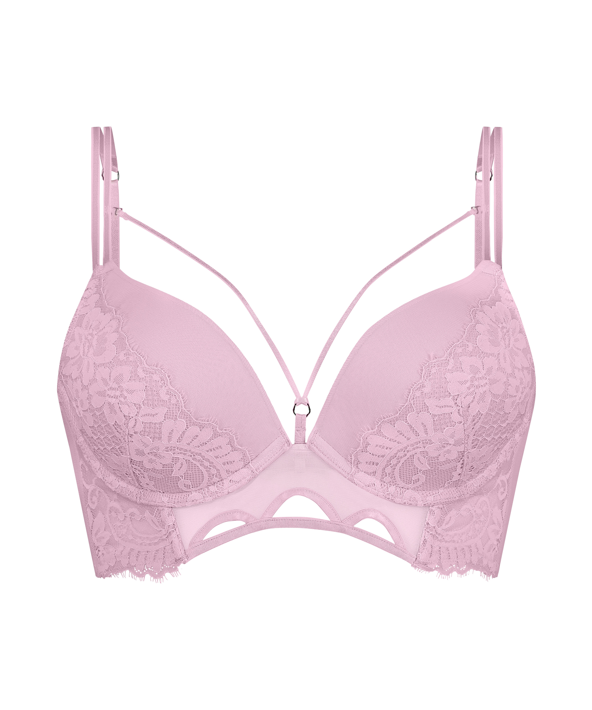 Usztywniany biustonosz push-up z fiszbinami longline Lidia - Różowy