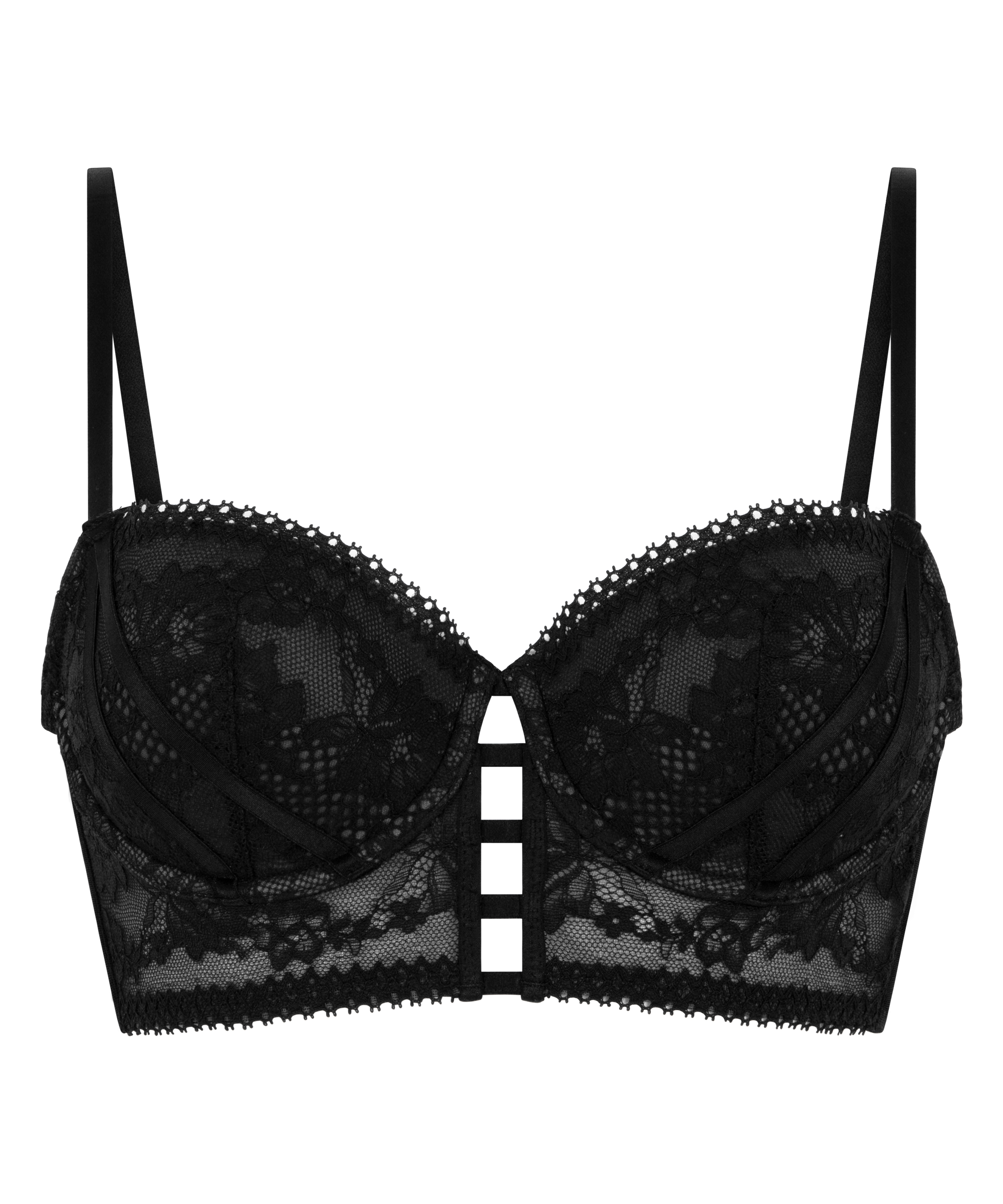 Usztywniany długi biustonosz z fiszbinami Vera - Czarny