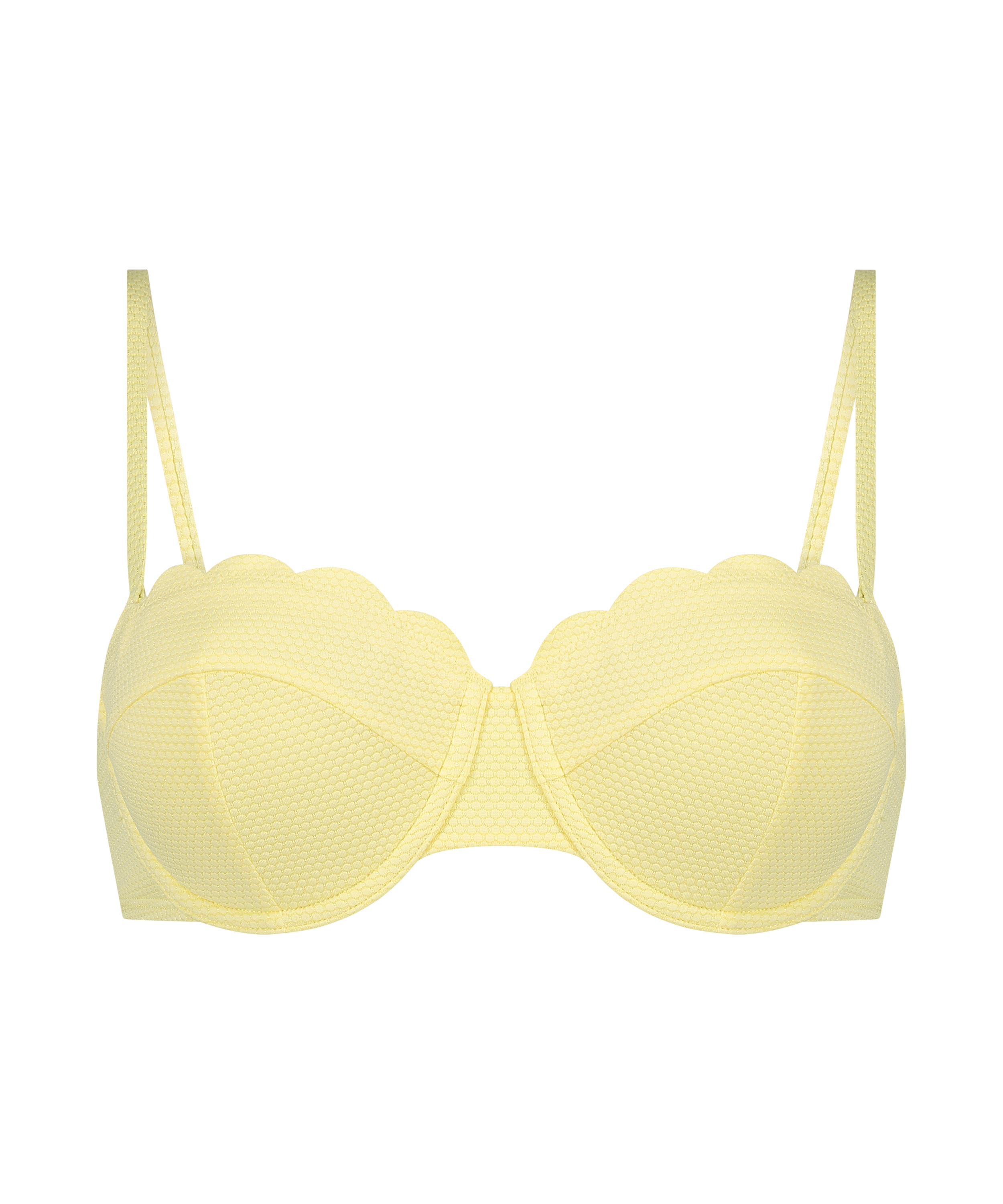 Usztywniona góra od bikini z fiszbinami i bez ramiączek Scallop miseczki E + - Żółty