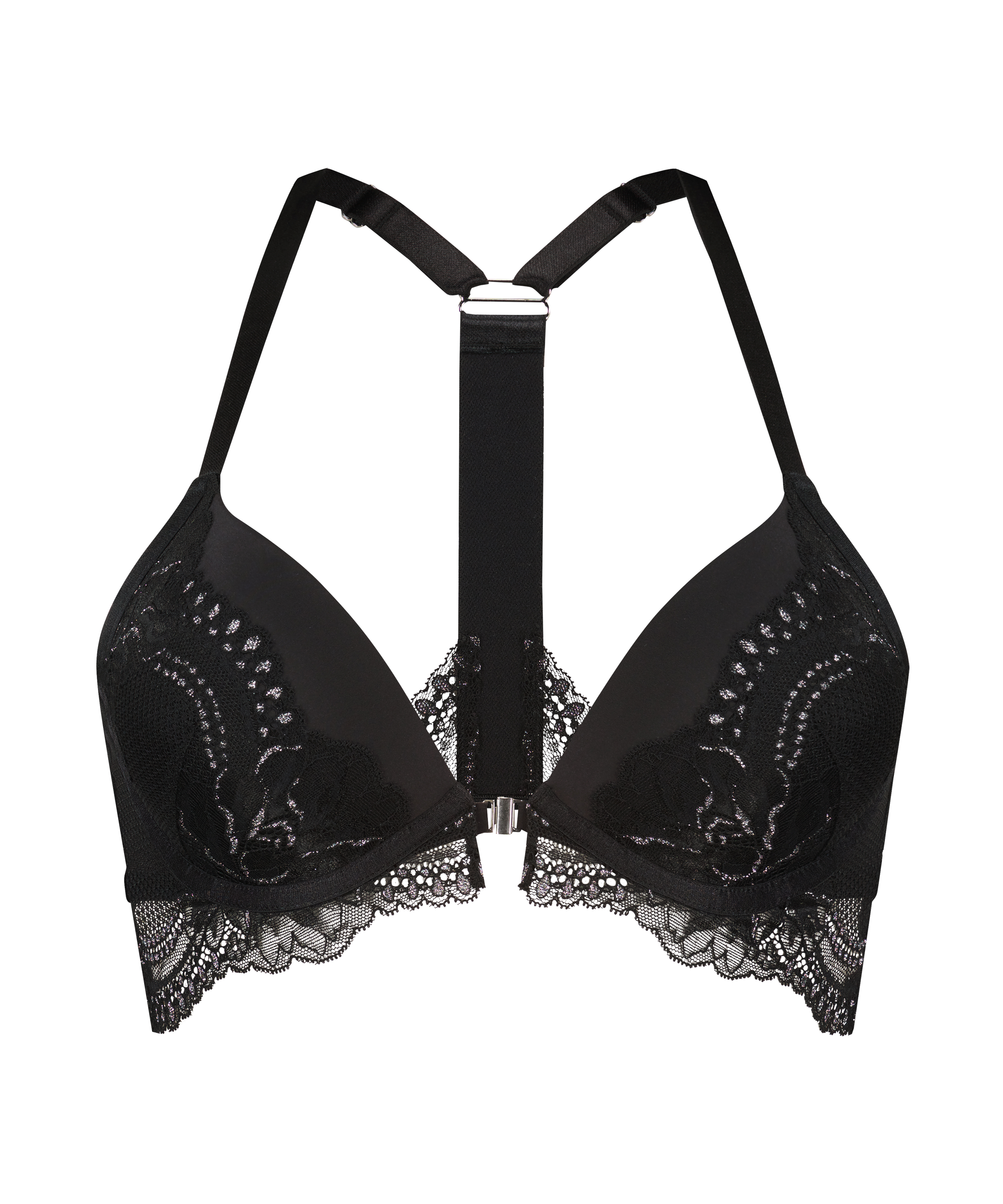 Ten biustonosz push-up longline to idealny sposób na podkreślenie krągłości. Miękkie wypełnienie dodaje objętości i podparcia, a koronkowy paseczek z tyłu nadaje odrobinę zuchwałości. Srebrny lureks osadzony w tkaninie sprawia, że biustonosz jest wyjątkowo efektowny, a zapięcie z przodu ułatwia zakładanie i zdejmowanie. Połącz ten biustonosz z dopasowanymi elementami z kolekcji Donna.