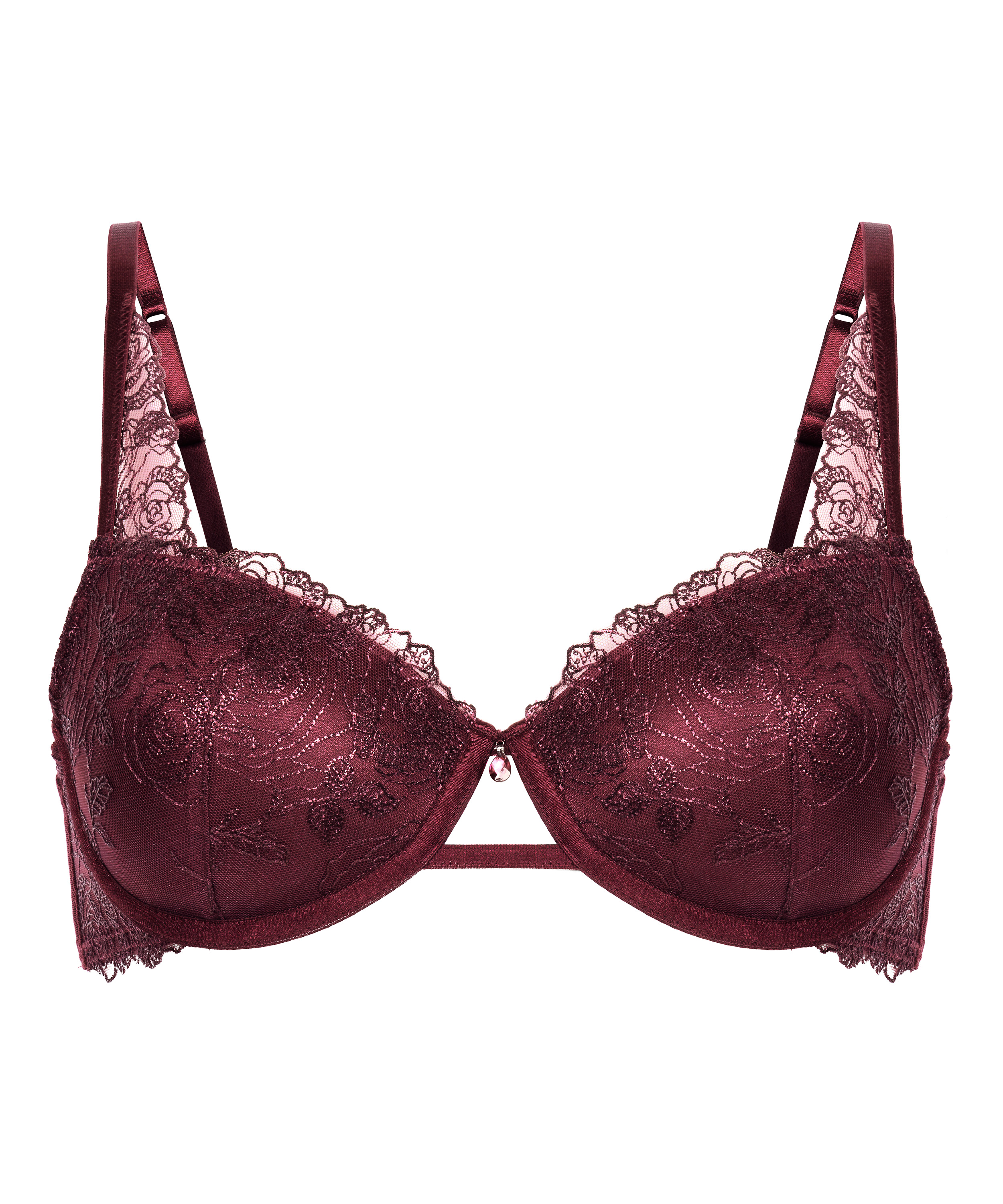 Ten biustonosz, zaprojektowany, by olśniewać, łączy w sobie ustrukturyzowane wsparcie z dbałością o szczegóły. Miseczki są usztywniane, aby podkreślić naturalny kształt biustu, a fiszbiny delikatnie go unoszą. Wykonany z siateczki i haftowanych kwiatów, stanowi idealne połączenie blasku i romantyzmu. Połącz z dopasowanymi majtkami, aby stworzyć idealny zestaw.
