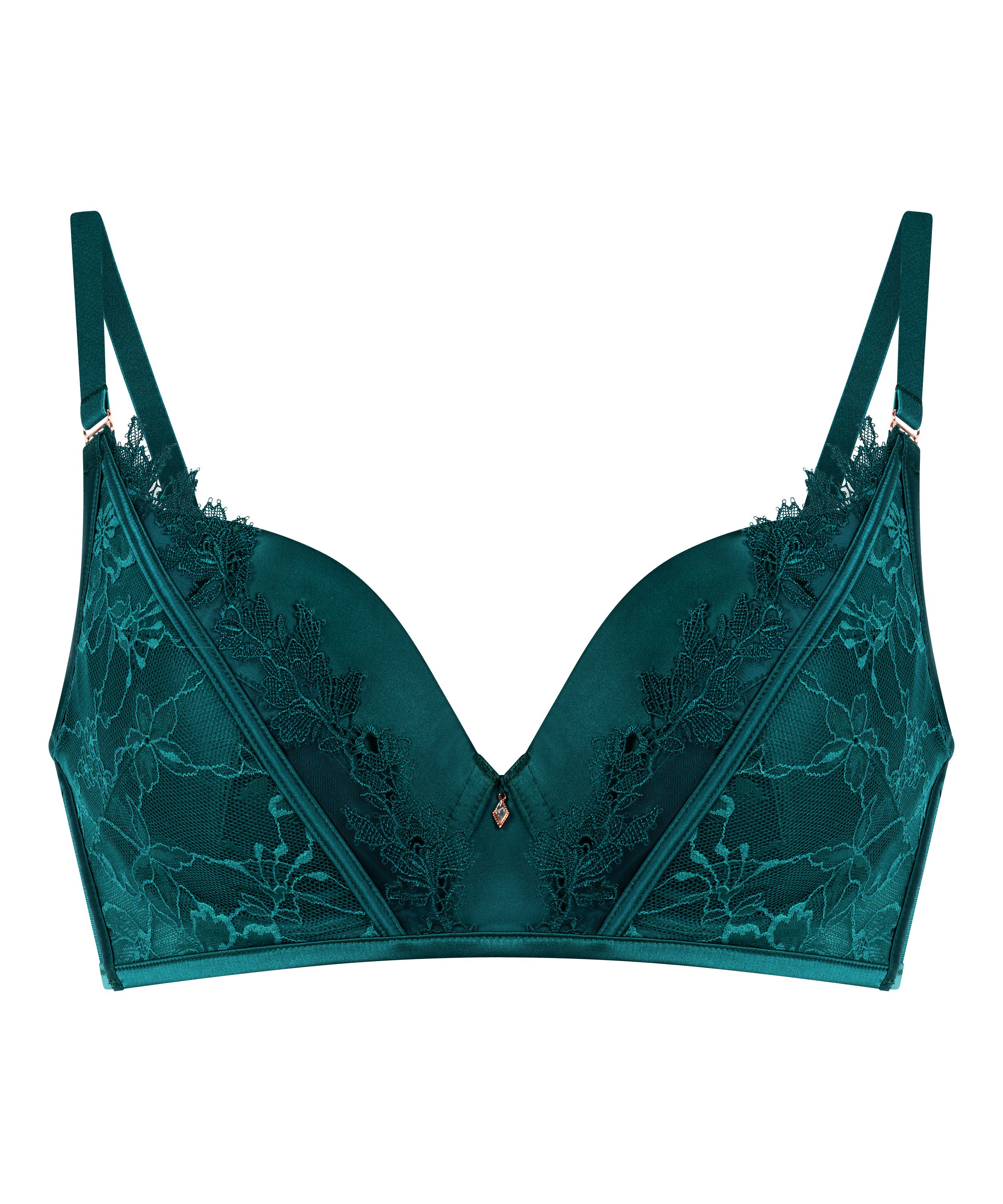Kobiecy, podkreślający figurę i zaprojektowany, aby podkreślać biust — nasz koronkowy biustonosz typu plunge z usztywnianymi miseczkami oferuje idealne połączenie wsparcia i stylu. Miseczki z fiszbinami delikatnie unoszą i modelują biust, a głęboki dekolt naturalnie podkreśla sylwetkę.