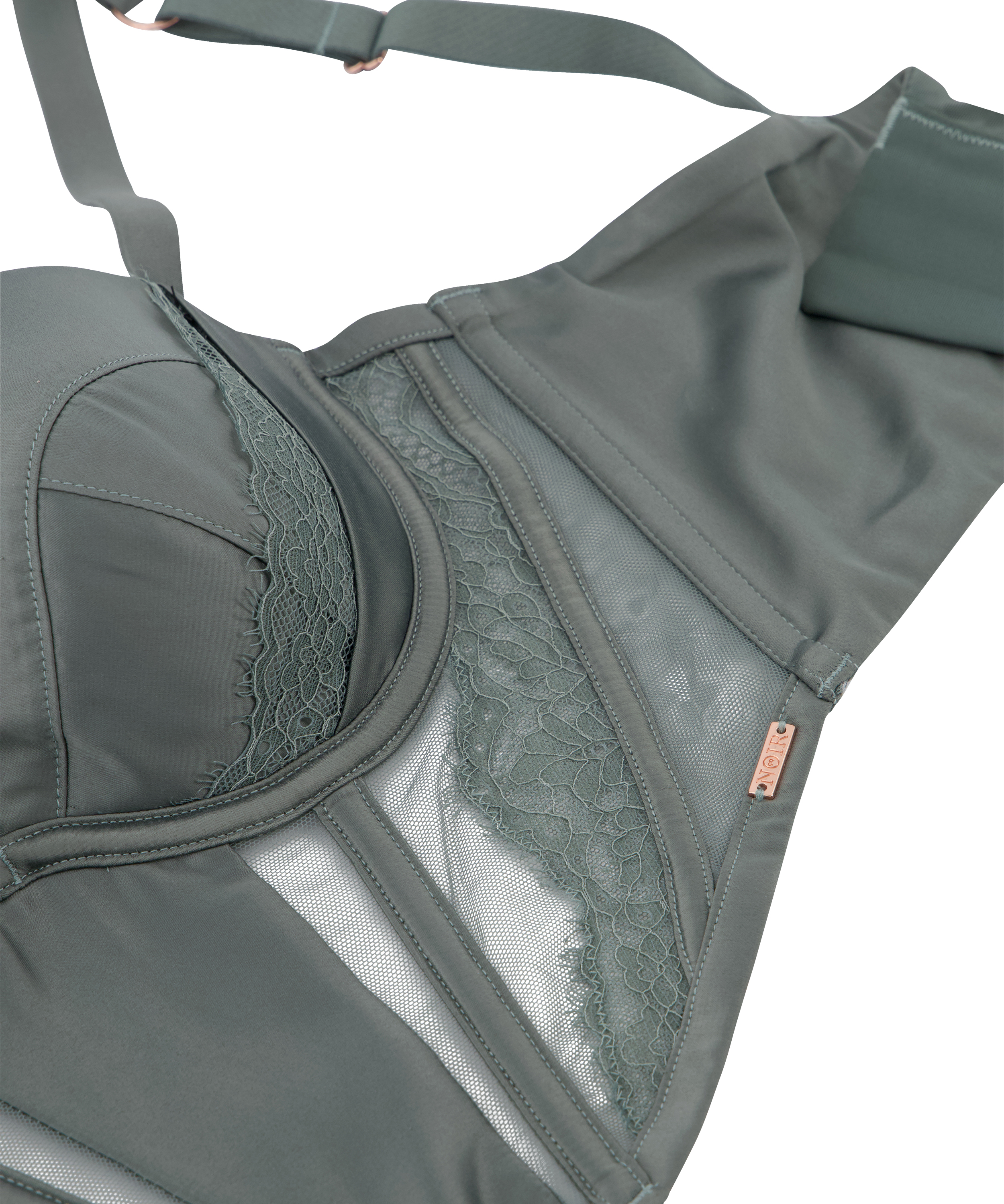 Usztywniony długi biustonosz z fiszbinami Nicole - Zielony