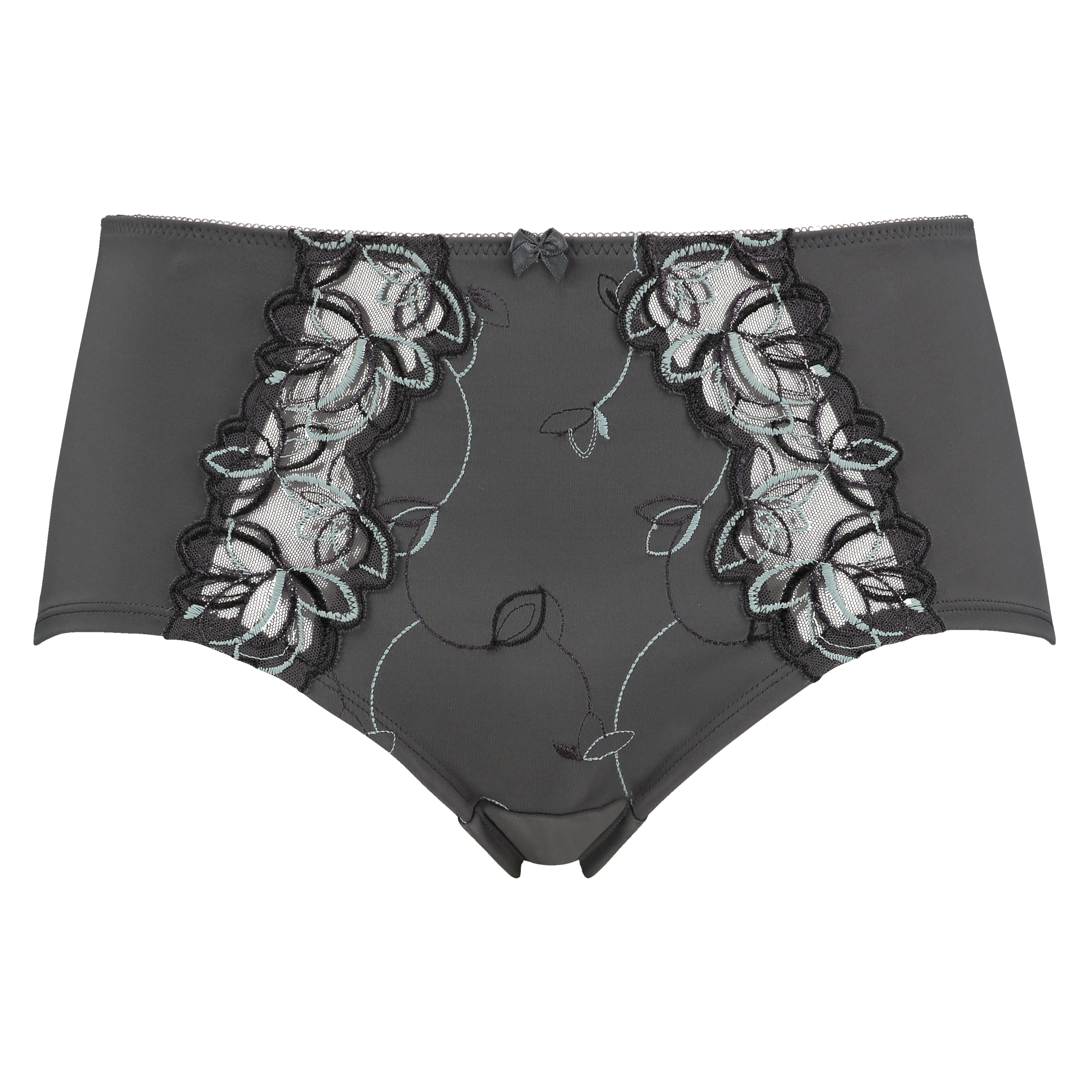 Te wysokie bokserki są wykonane z miękkiego materiału, świetnie się dopasowują, mają kwiatowy haft i małą kokardkę z przodu.