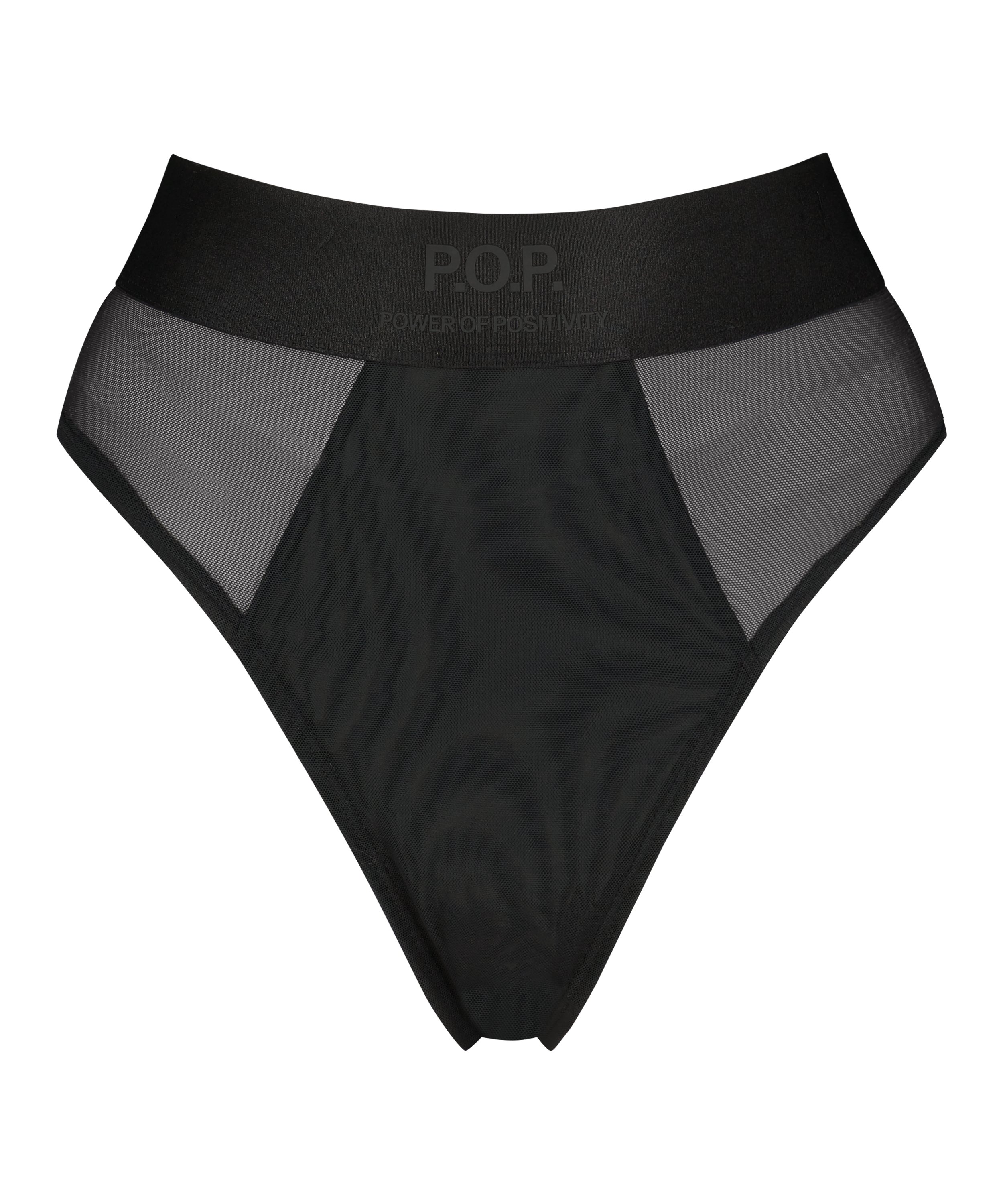 Te seksowne brazyliany mają piękne panele z siateczki, które zapewniają efekt prześwitywania. Majtki mają luksusową, błyszczącą, satynową taśmę w talii z logo i są tak wygodne, że zapomnisz, że masz je na sobie. Połącz te niesamowite brazyliany z pasującym biustonoszem bralette. Model jest częścią kolekcji P.O.P. „Power of Positivity”. Inspirujące i pełne energii nastawienie „myśl pozytywnie”. Ta kolekcja podkreśla miłość do siebie, różnorodność i świadomy styl życia.