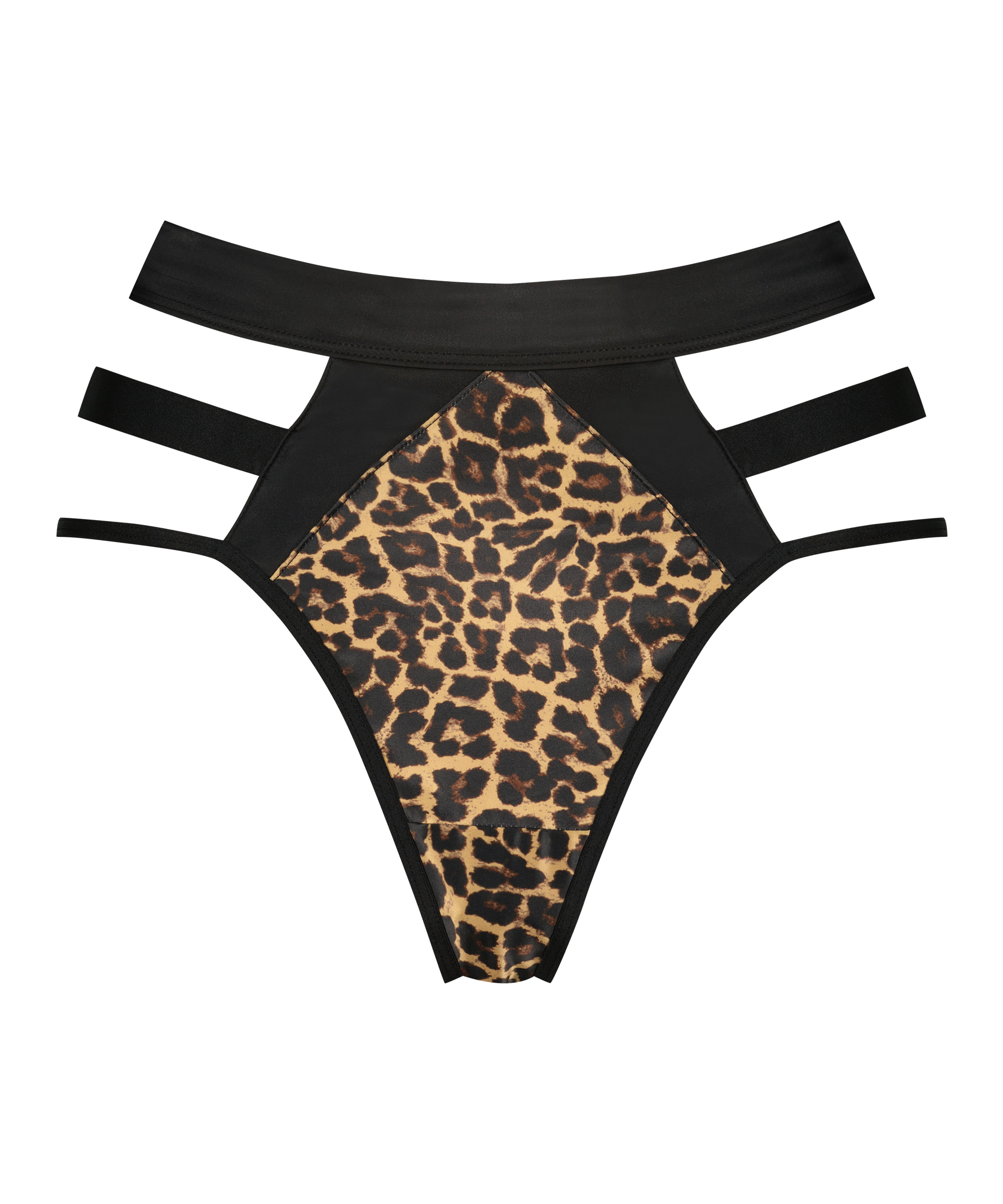 Wyglądaj seksownie w tych stringach! Model z szerokim paskiem, wycięciami i wysokim stanem. Połącz z dopasowanymi elementami. Część kolekcji Private.