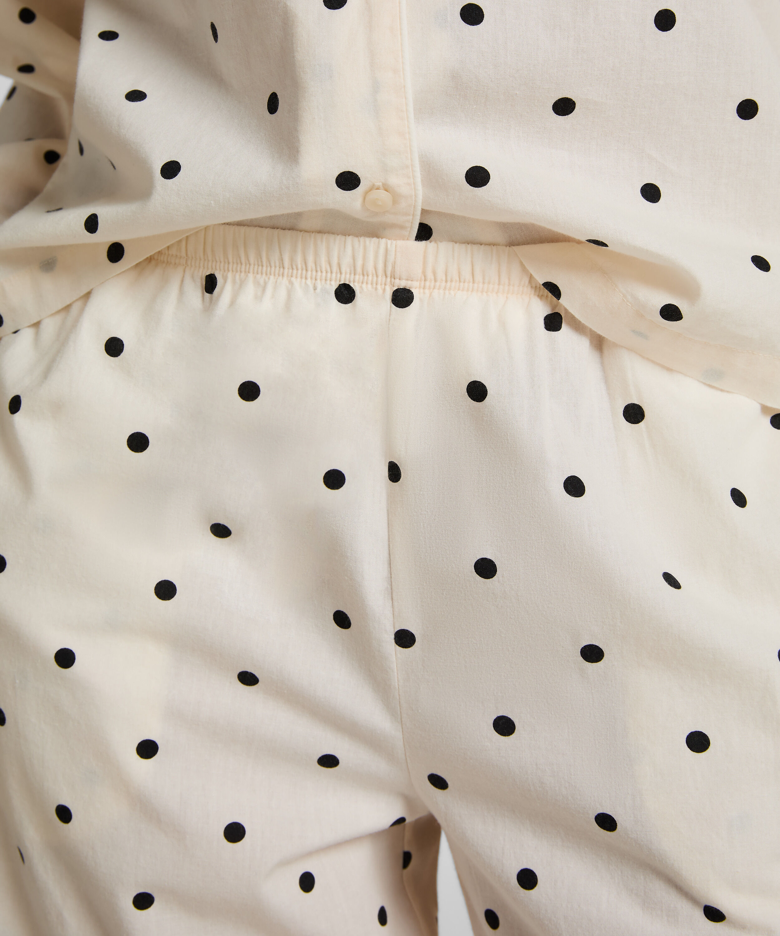 Relaksuj się w stylu dzięki temu komfortowemu i zabawnemu zestawowi piżamowemu, zaprojektowanemu na słodkie sny i przytulne poranki. Wykonany z miękkiej, oddychającej dzianiny bawełnianej, zawiera koszulkę z krótkim rękawem oraz dopasowane szorty, które poruszają się razem z Tobą. Uroczy nadruk na całej powierzchni dodaje radosnego, pogodnego charakteru. Ulepsz swoją kolekcję nocną – połącz z ulubionym szlafrokiem, aby uzyskać pełnię stylu.
