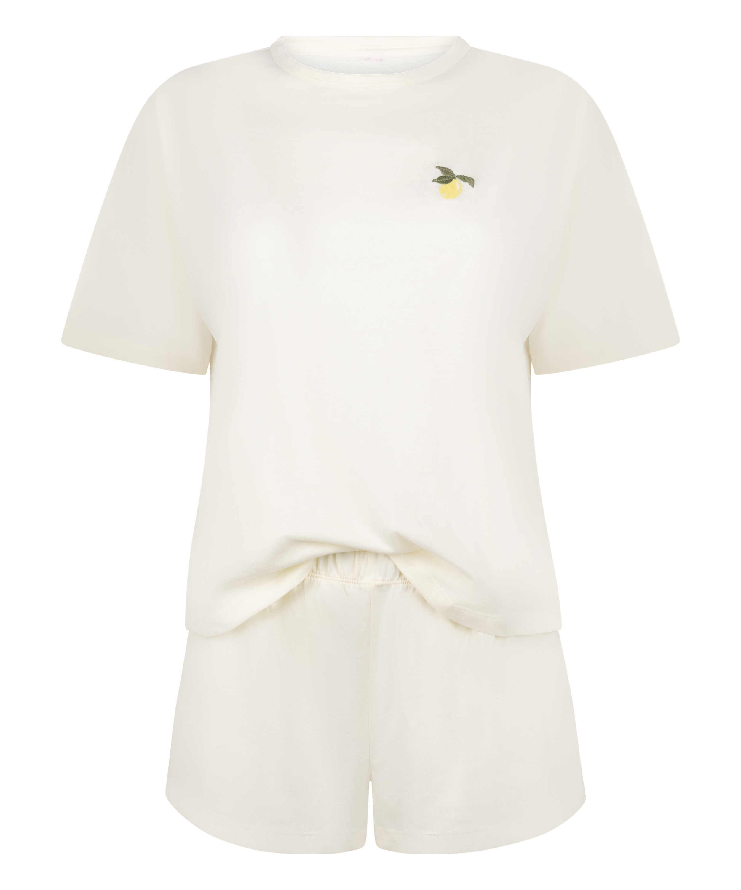 Zachowaj chłód i komfort dzięki temu bawełnianemu zestawowi piżamowemu. W zestawie luźna koszulka z krótkim rękawem i dopasowane szorty – obie części z szerokim krojem dla maksymalnej swobody. Wykonany z bawełny, zestaw jest lekki i przyjemny dla skóry – idealny na cieplejsze noce lub do relaksu. Elastyczny pas w szortach zapewnia wygodne i dopasowane noszenie.