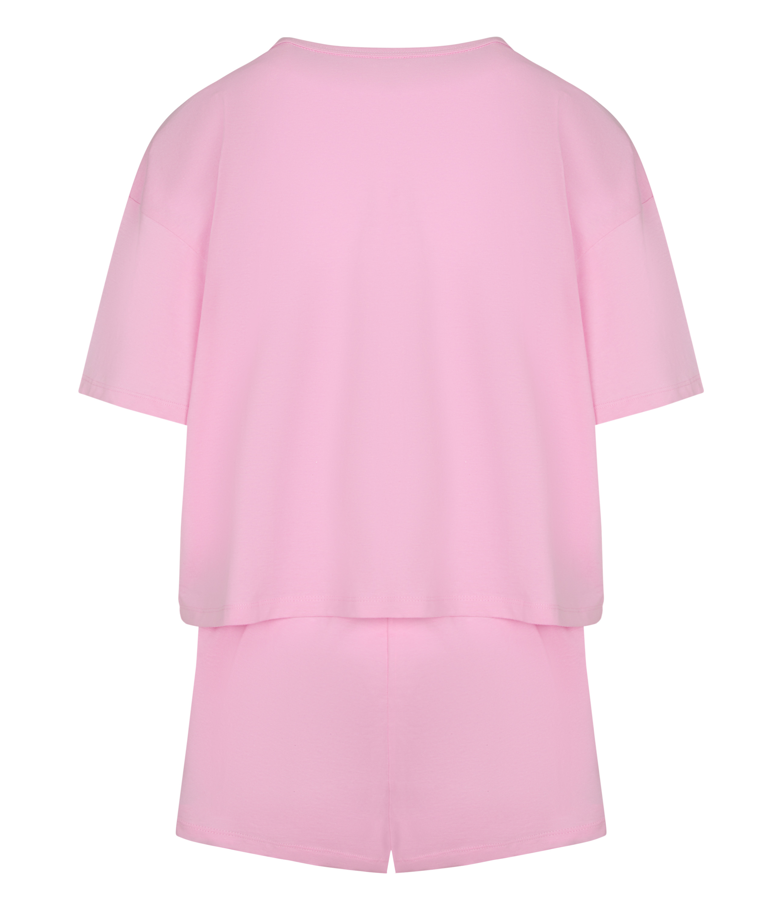 Zachowaj chłód i komfort dzięki temu bawełnianemu zestawowi piżamowemu. W zestawie luźna koszulka z krótkim rękawem i dopasowane szorty – obie części z szerokim krojem dla maksymalnej swobody. Wykonany z bawełny, zestaw jest lekki i przyjemny dla skóry – idealny na cieplejsze noce lub do relaksu. Elastyczny pas w szortach zapewnia wygodne i dopasowane noszenie.